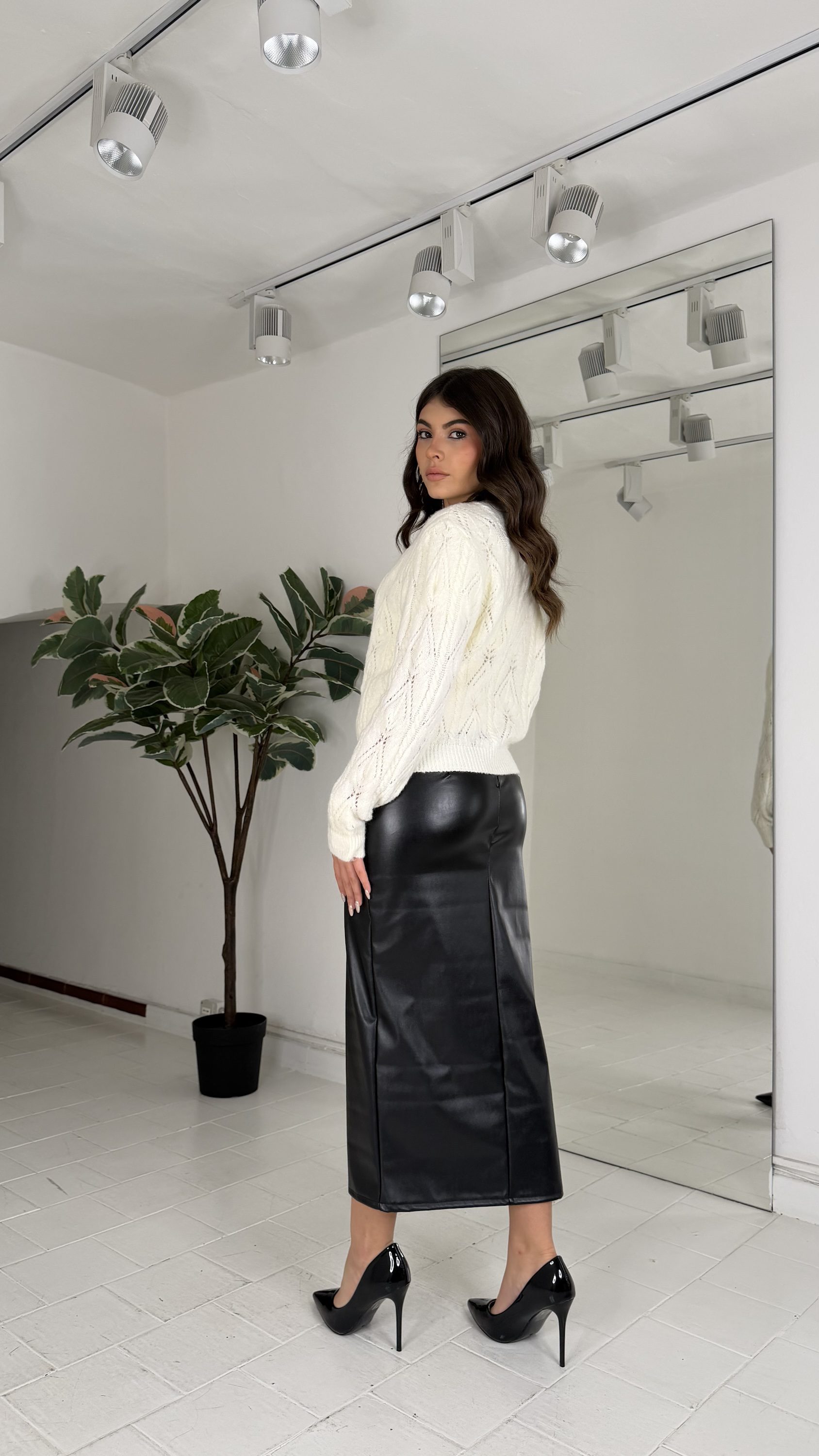 In Ecopelle, con Zip sul retro e passanti. La modella รจ una taglia S ed รจ alta 1.65cm