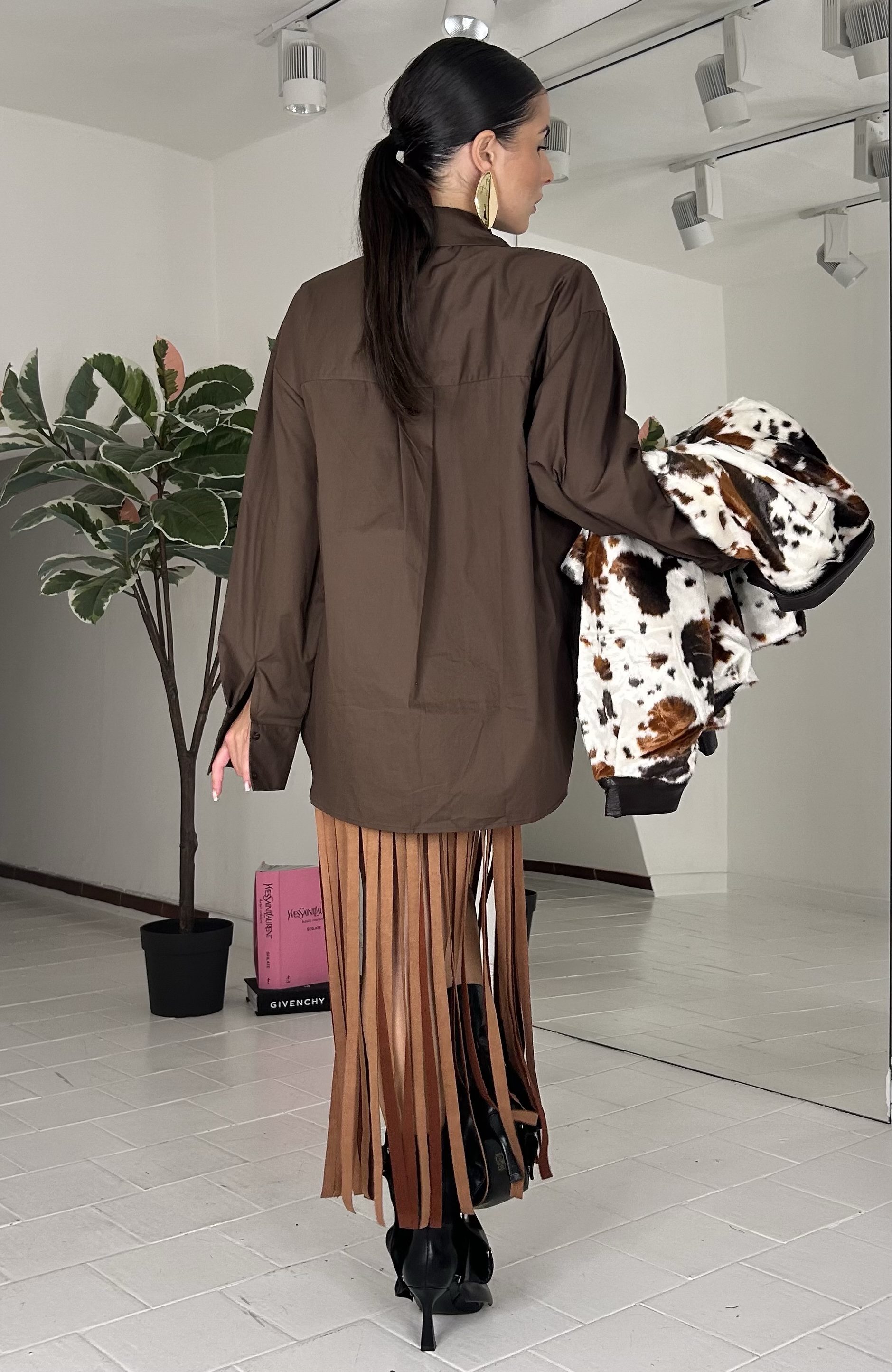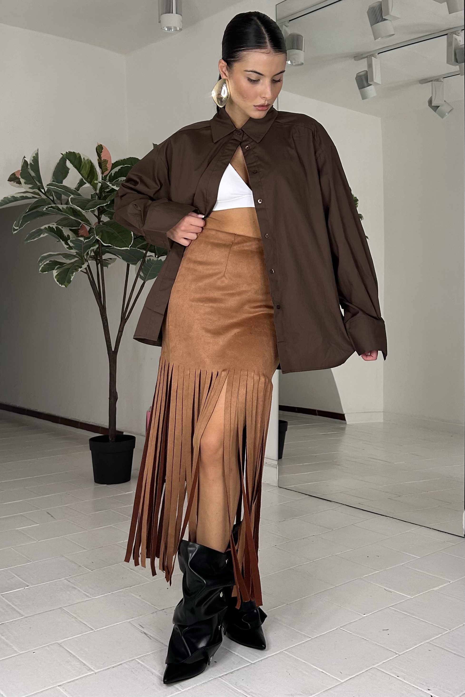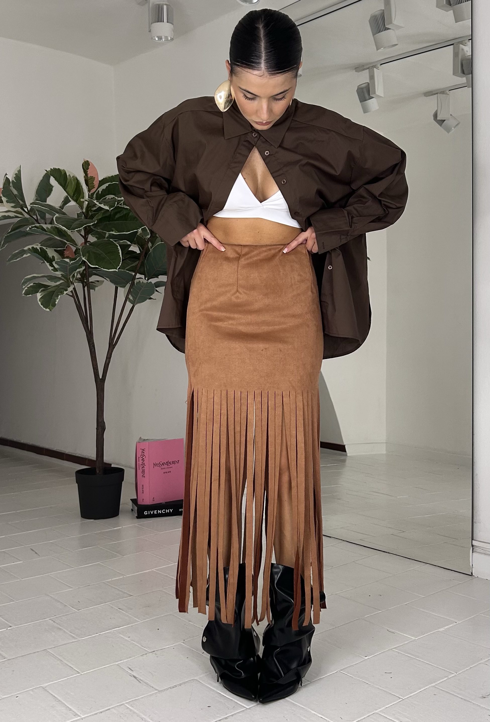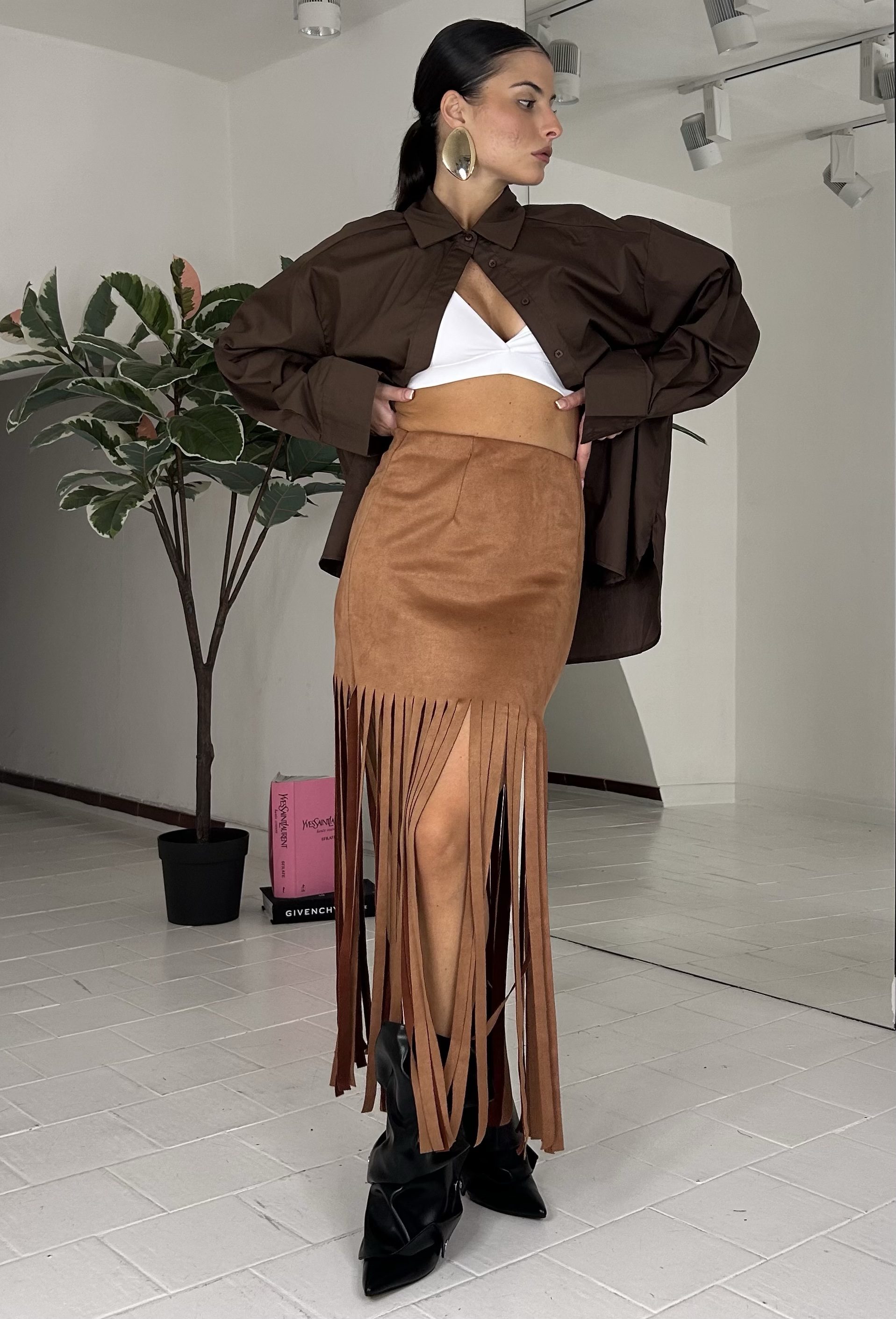 Consiglio da xs ad M, elastico in vita, in camoscio. La modella รจ una taglia S ed รจ alta 1.60cm