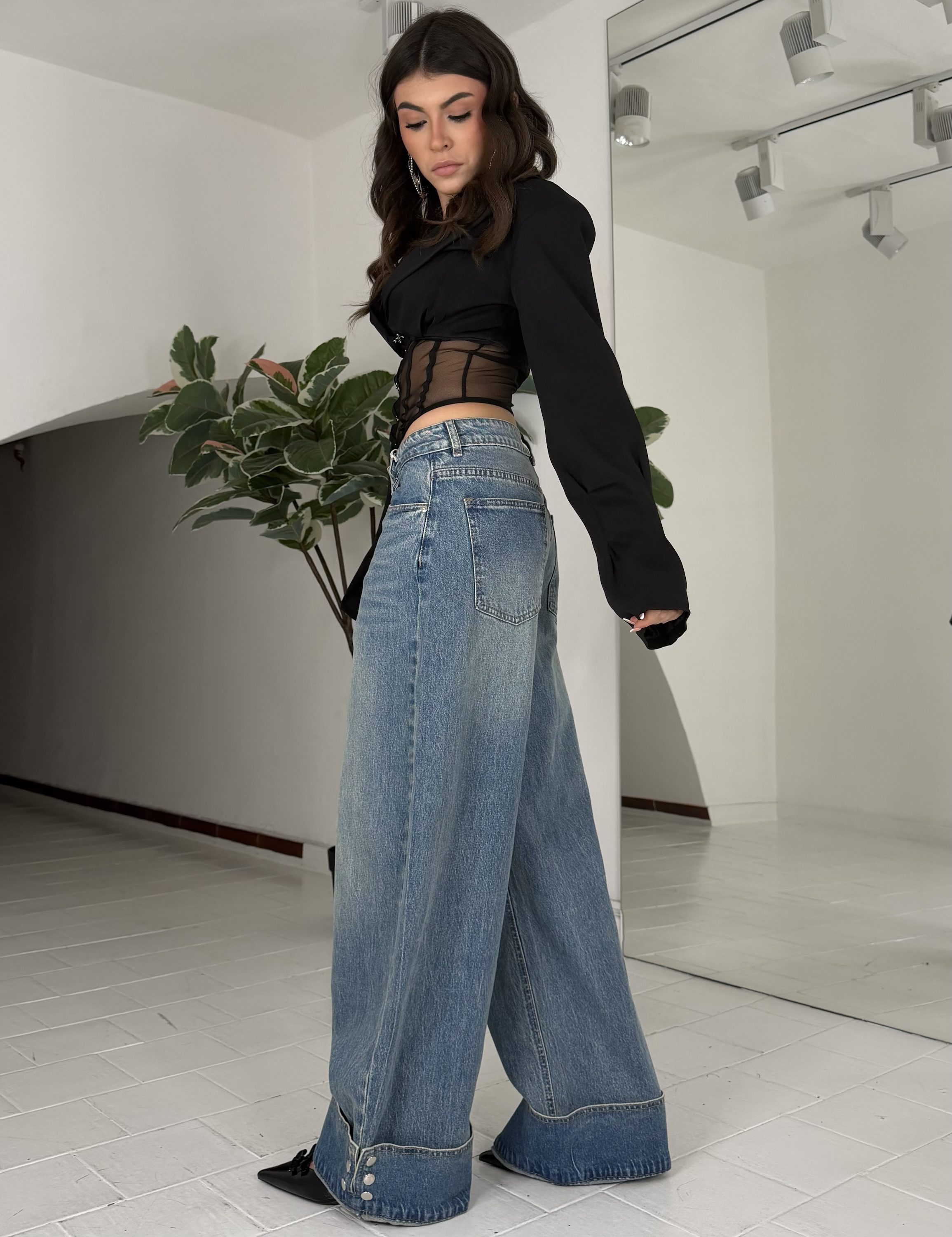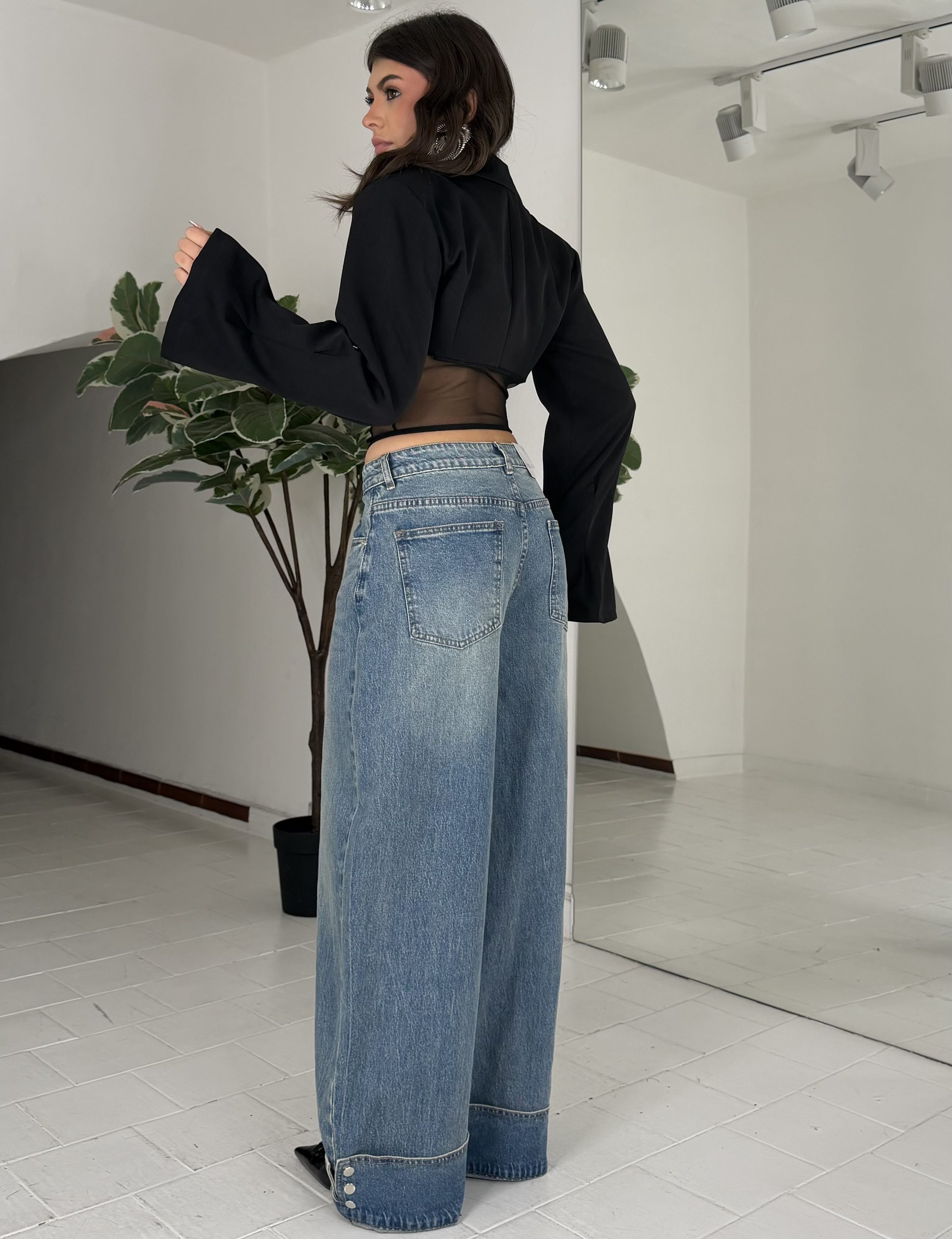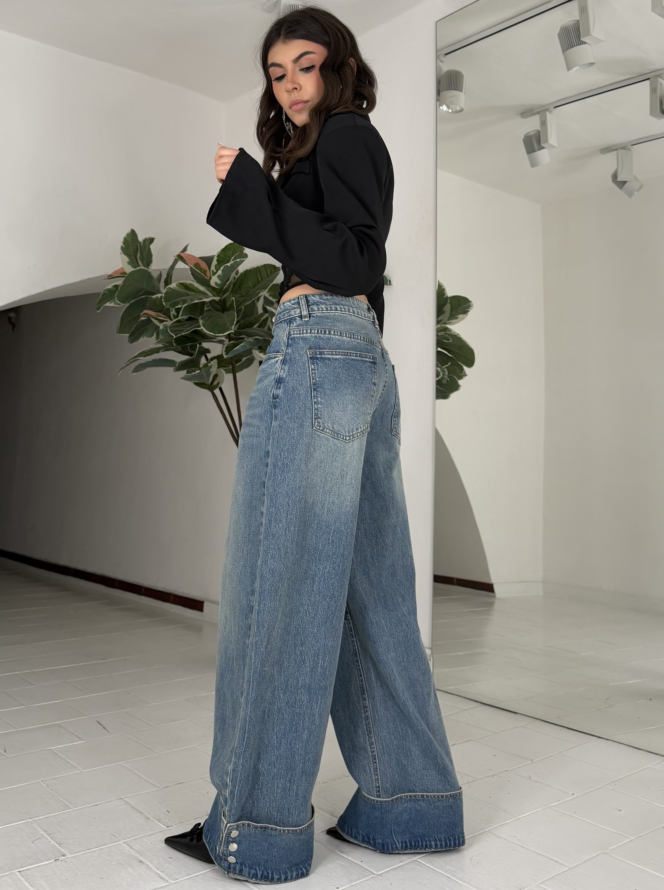 Strutturato, con tasche,zip,passanti, bottone. La modella รจ una taglia S ed รจ alta 1.65cm