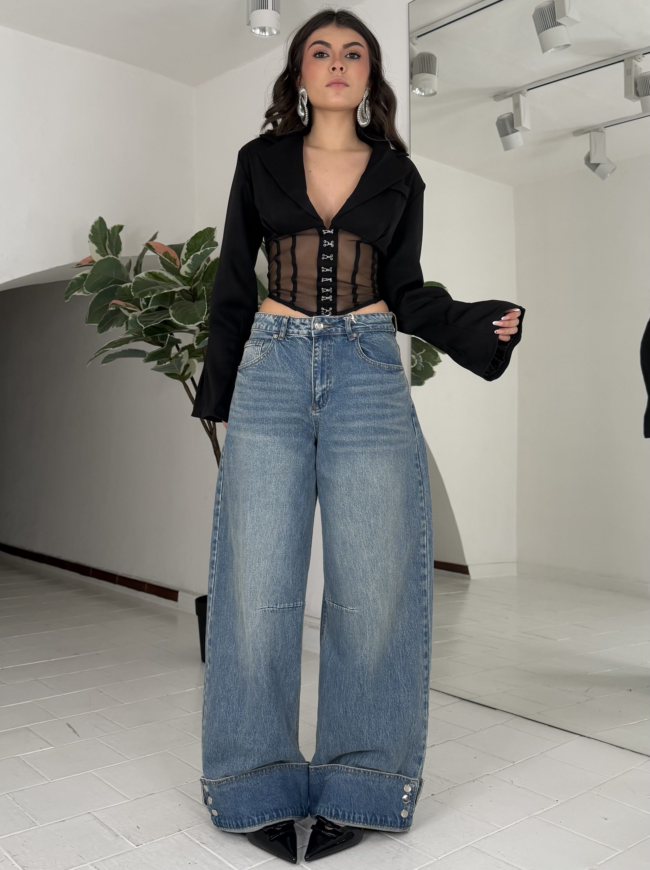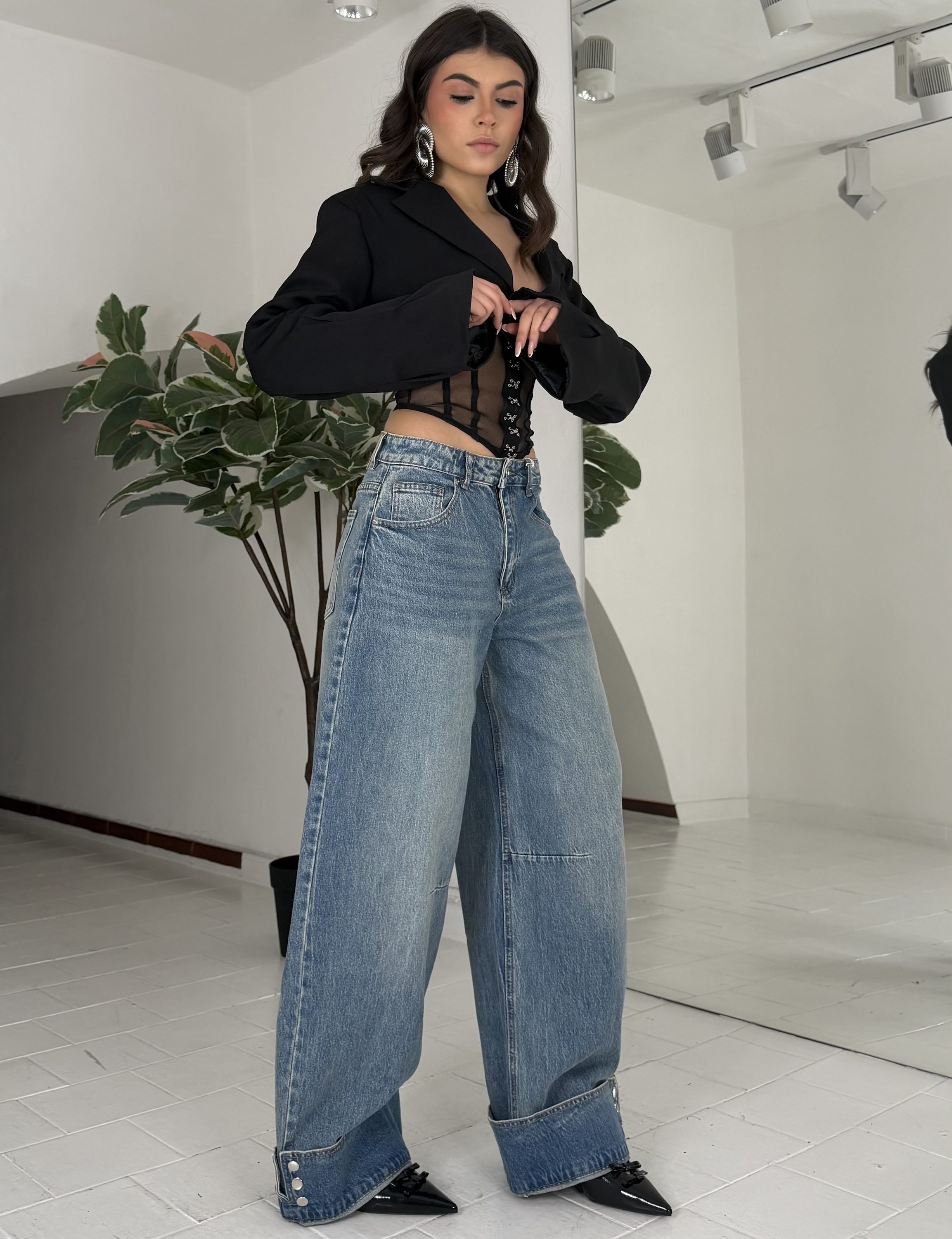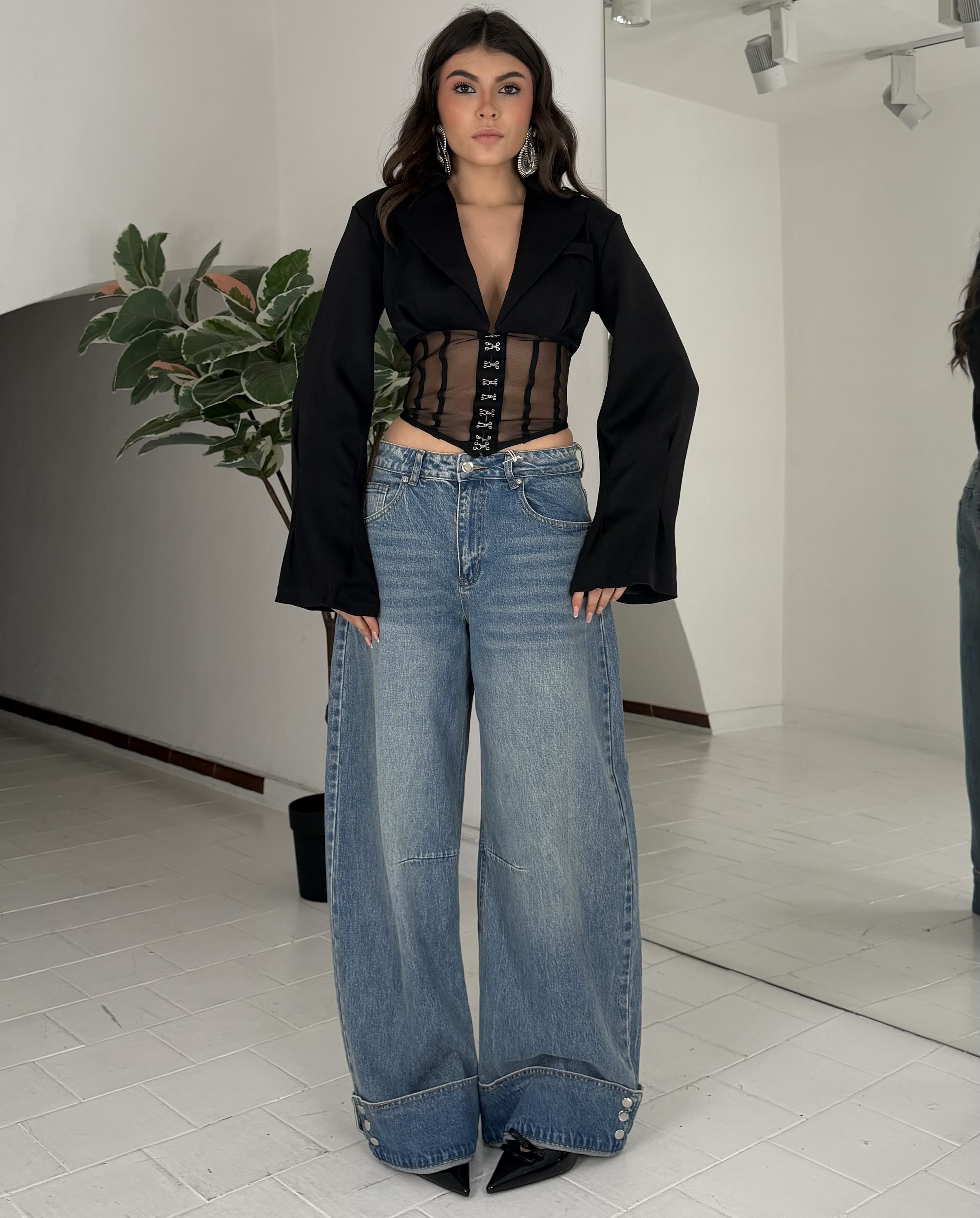Strutturato, con tasche,zip,passanti, bottone. La modella รจ una taglia S ed รจ alta 1.65cm