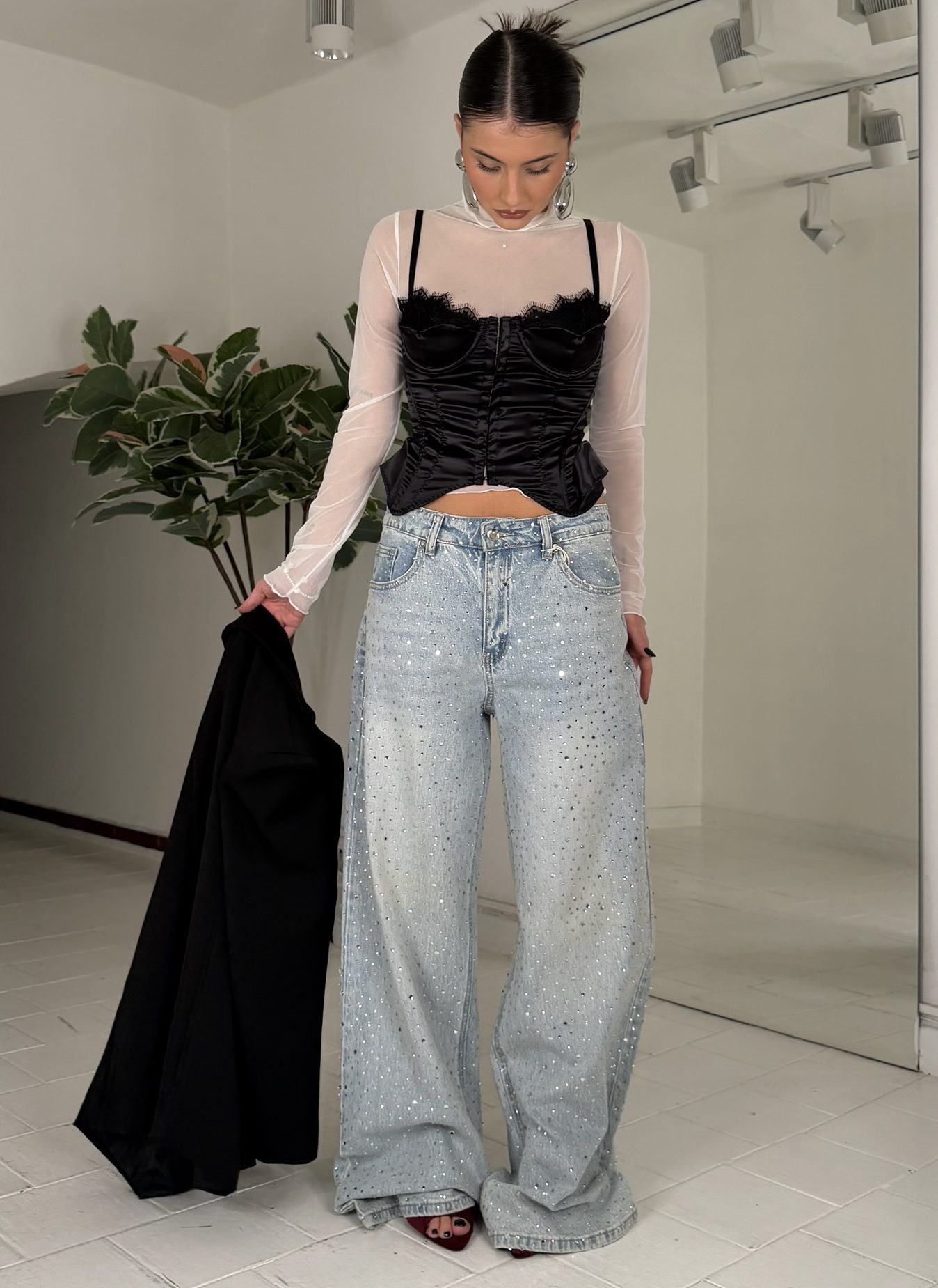 Modella รฉ una taglia S ed indossa la taglia M per vestibilitร vita bassa. La modella รจ una taglia S ed รจ alta 1.60cm