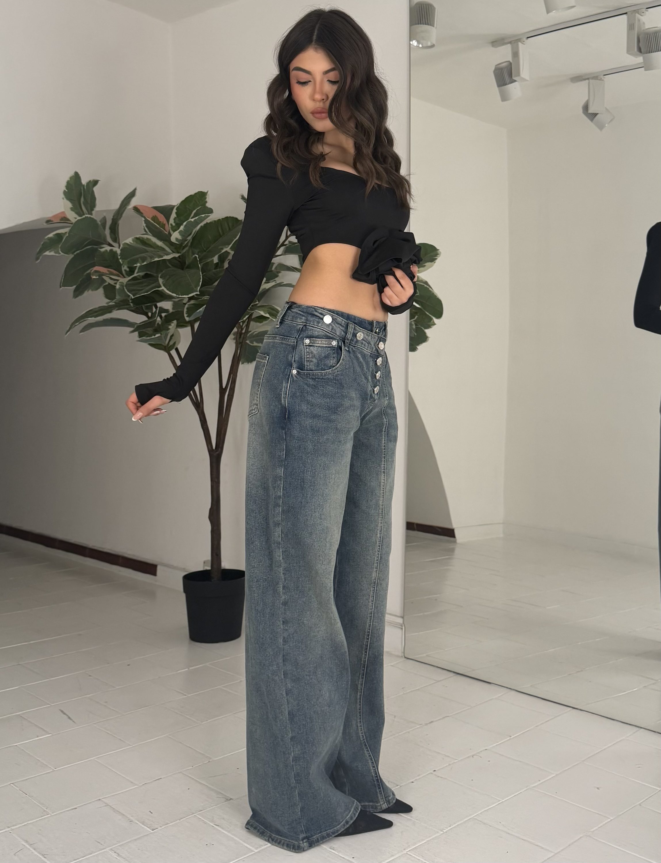 Con zip, bottoni, passanti. La modella รจ una taglia S ed รจ alta 1,65cm, indossa la taglia M per un effetto piรน oversize.