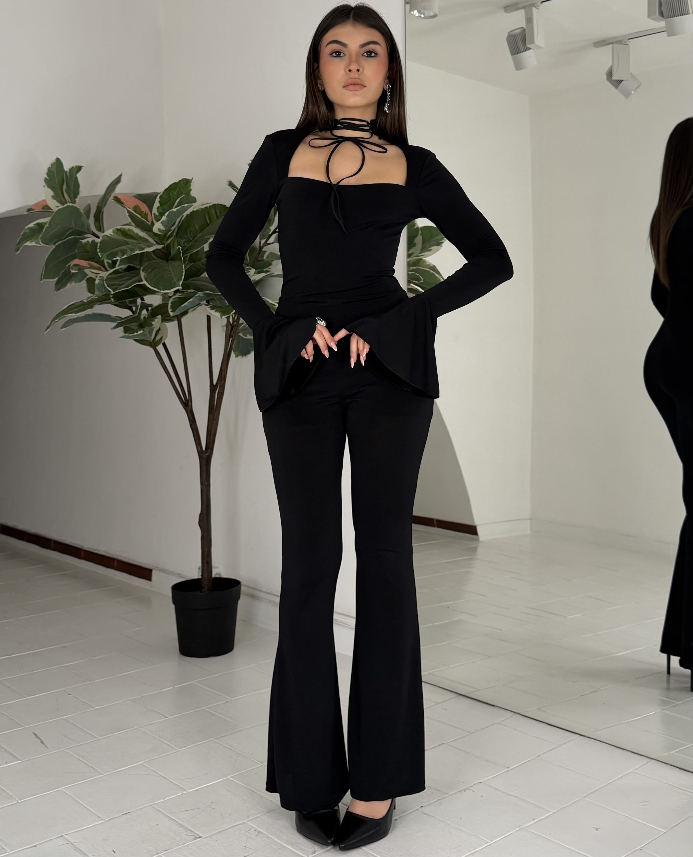 Consiglio da xs ad L, elasticizzata, con bottoni dietro il collo. La modella รจ una taglia S ed รจ alta 1.65cm