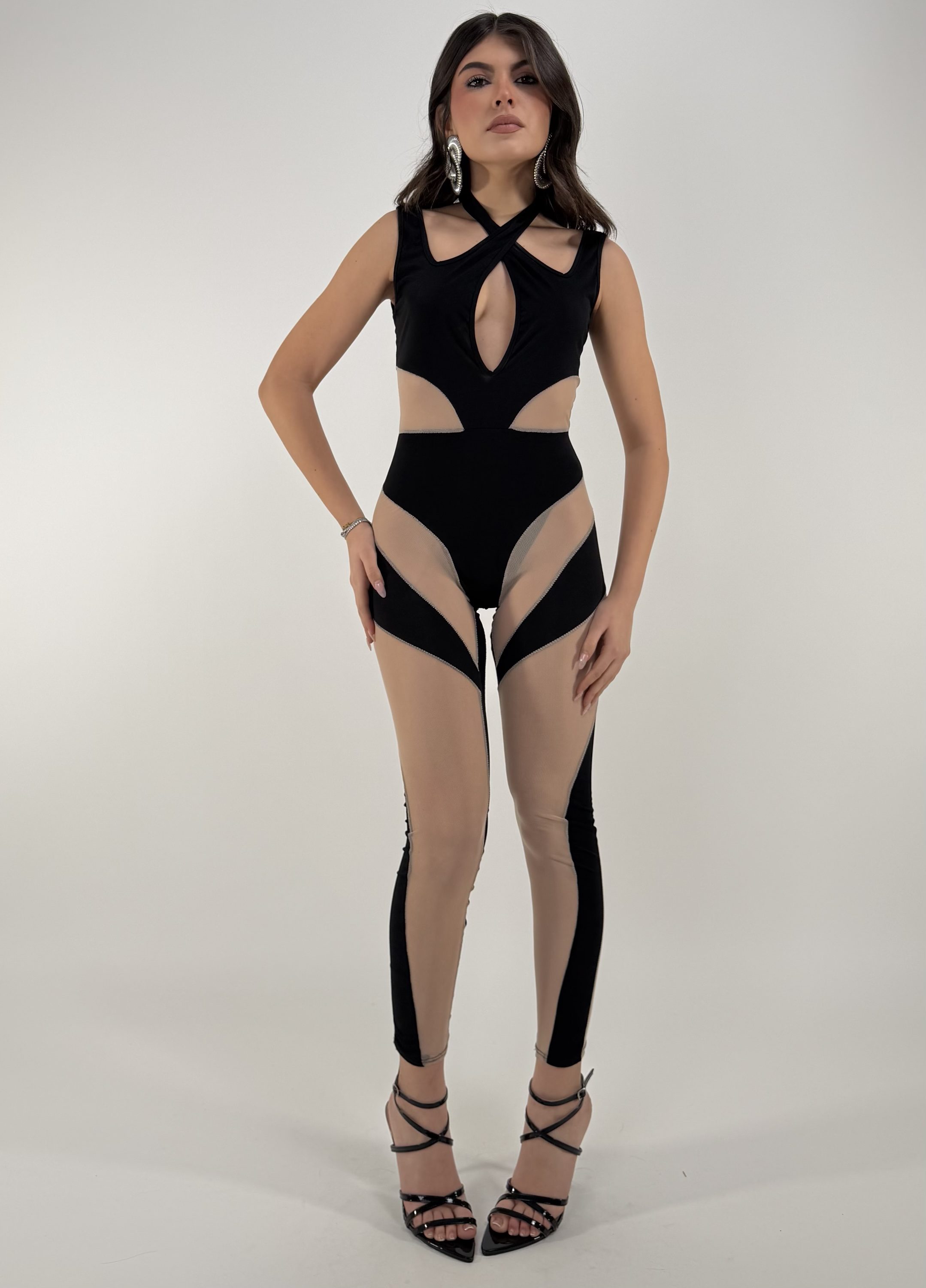 Consiglio da xs ad L, con fiocco regolabile dietro il collo. La modella รจ alta 1.65cm ed รจ una taglia S