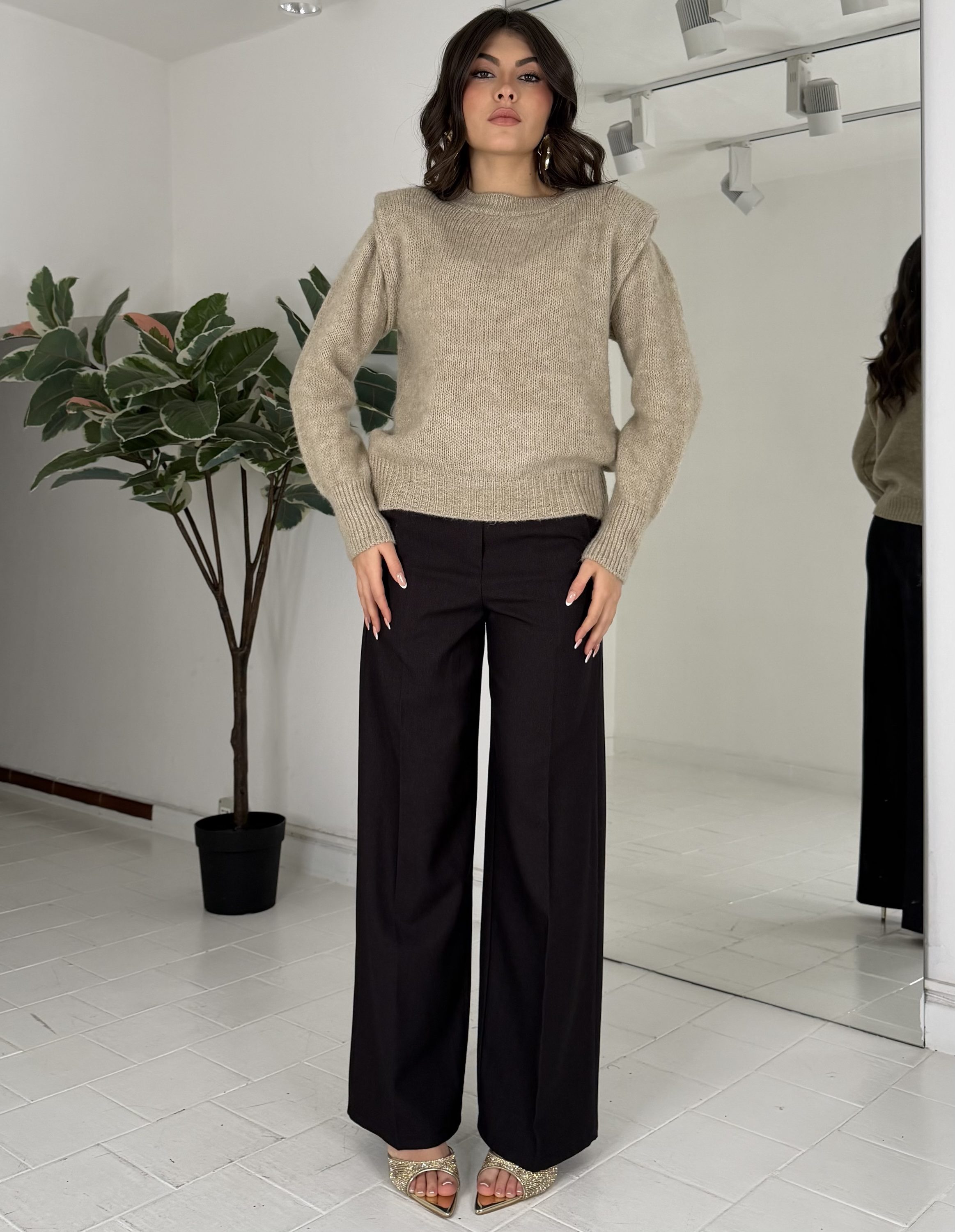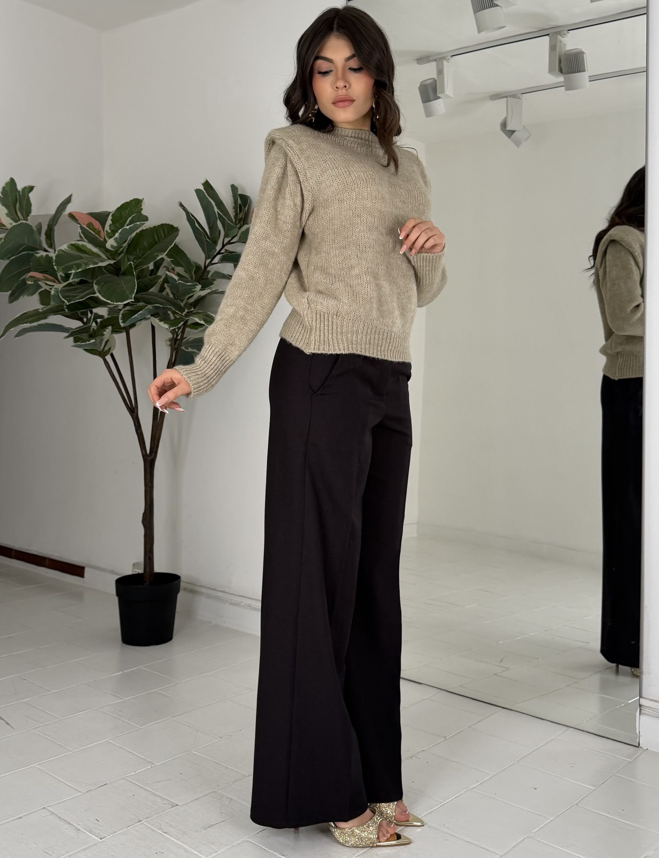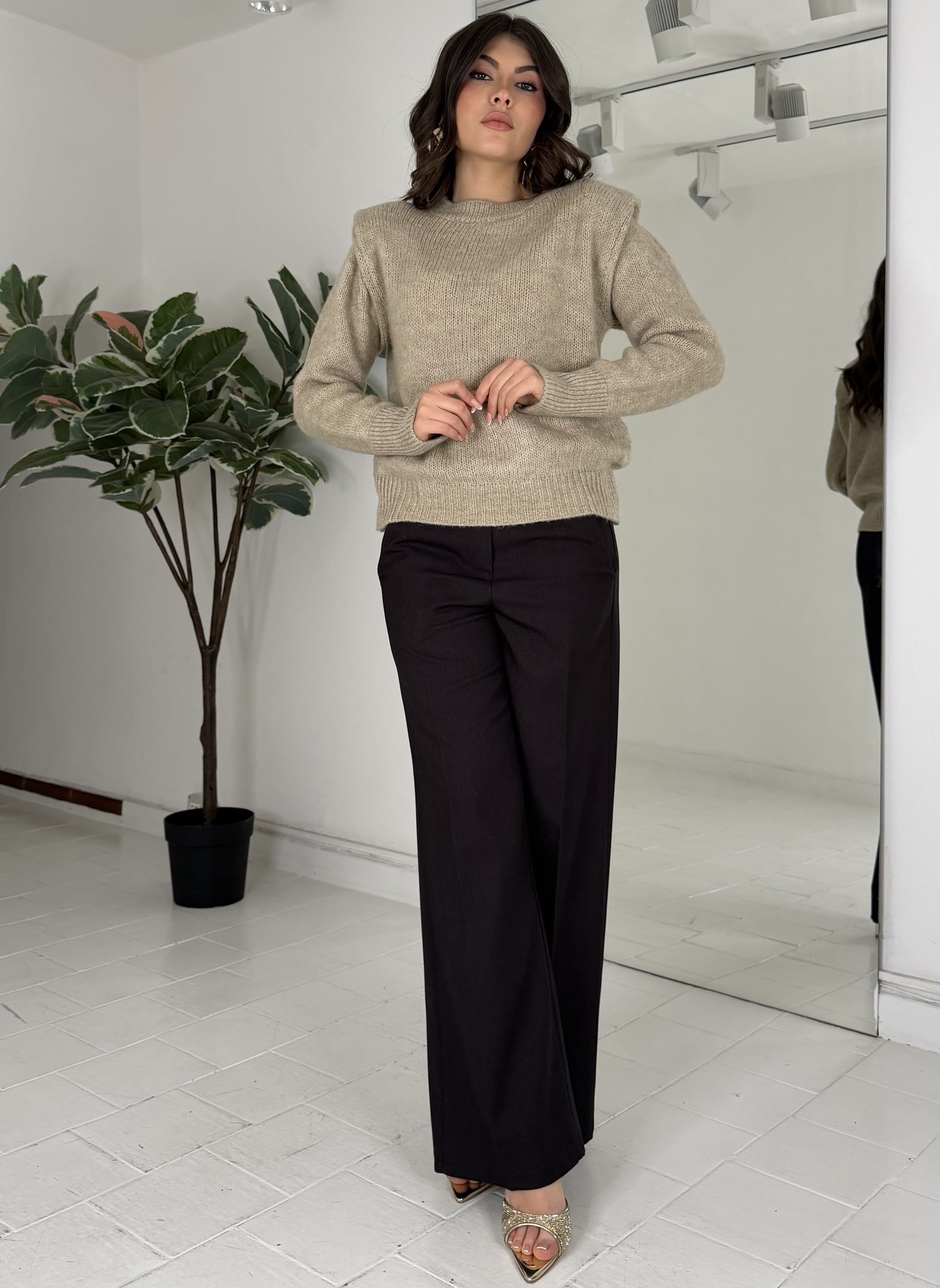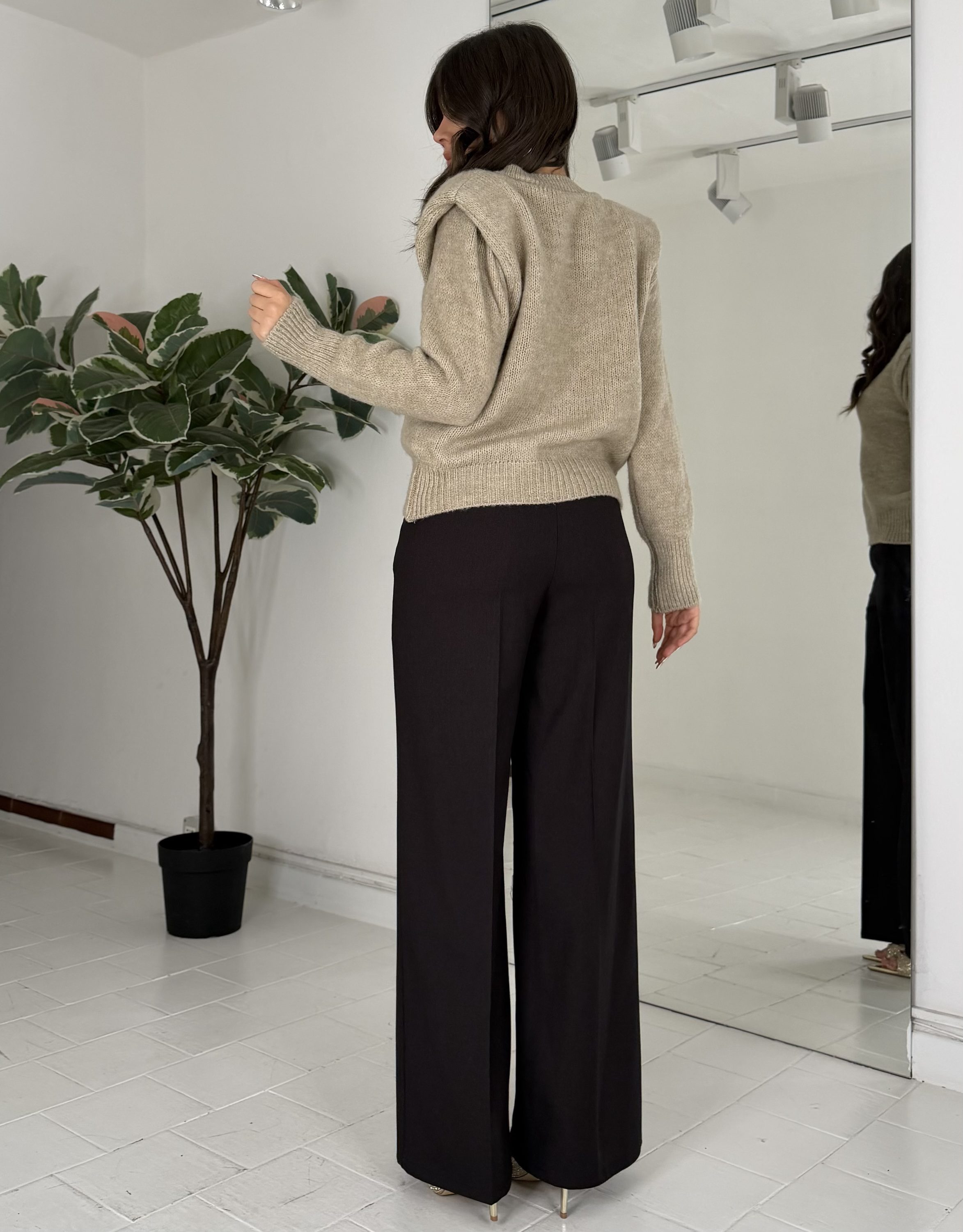 Con elastico sul retro, bottone e passanti. La modella รจ una taglia S ed รจ รจ alta 1.65cm