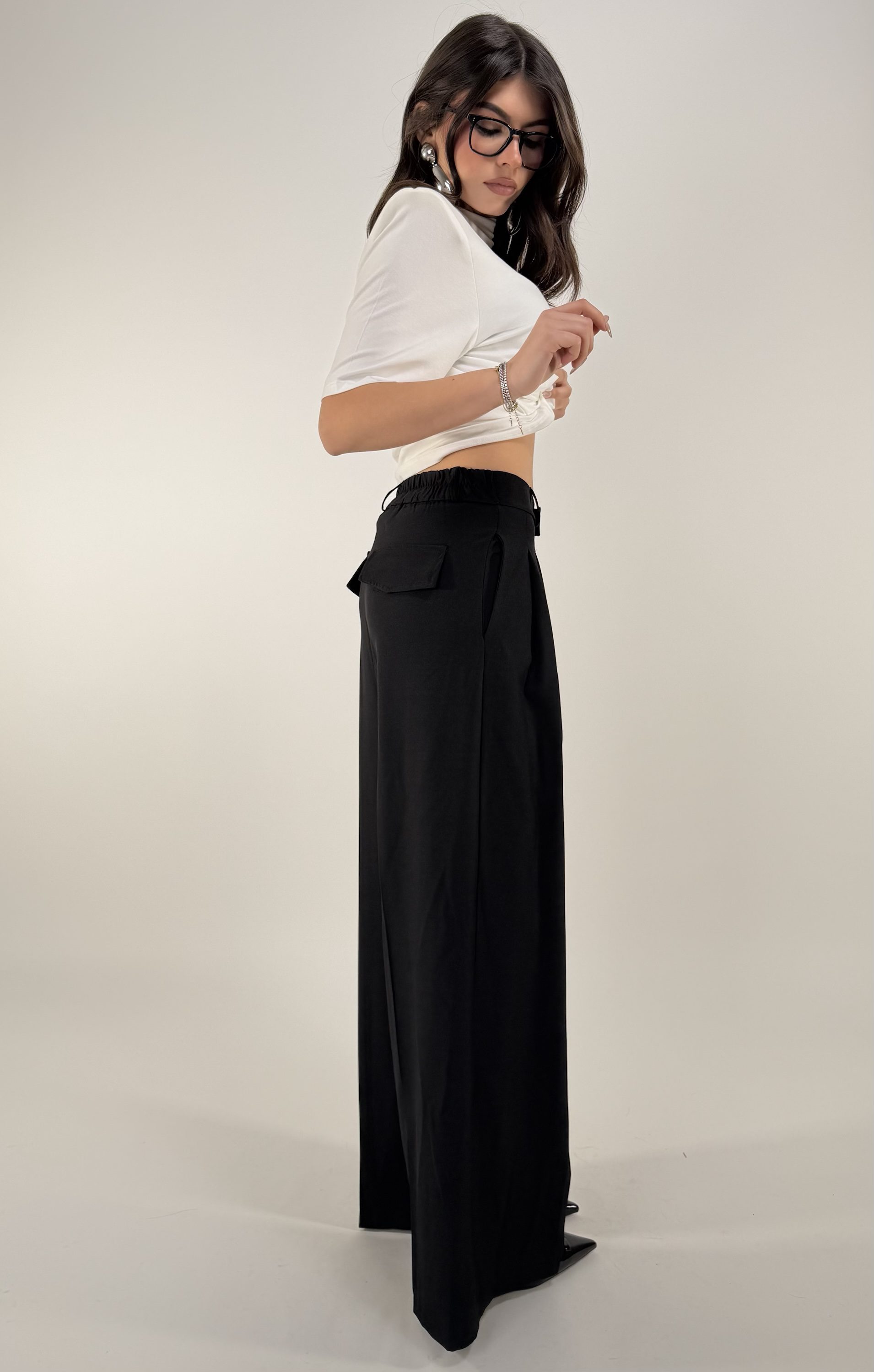 Consiglio da xs ad XL, con elastico sul retro, bottone,zip, passanti e tasche La modella รจ alta 1.65cm ed รจ una taglia S