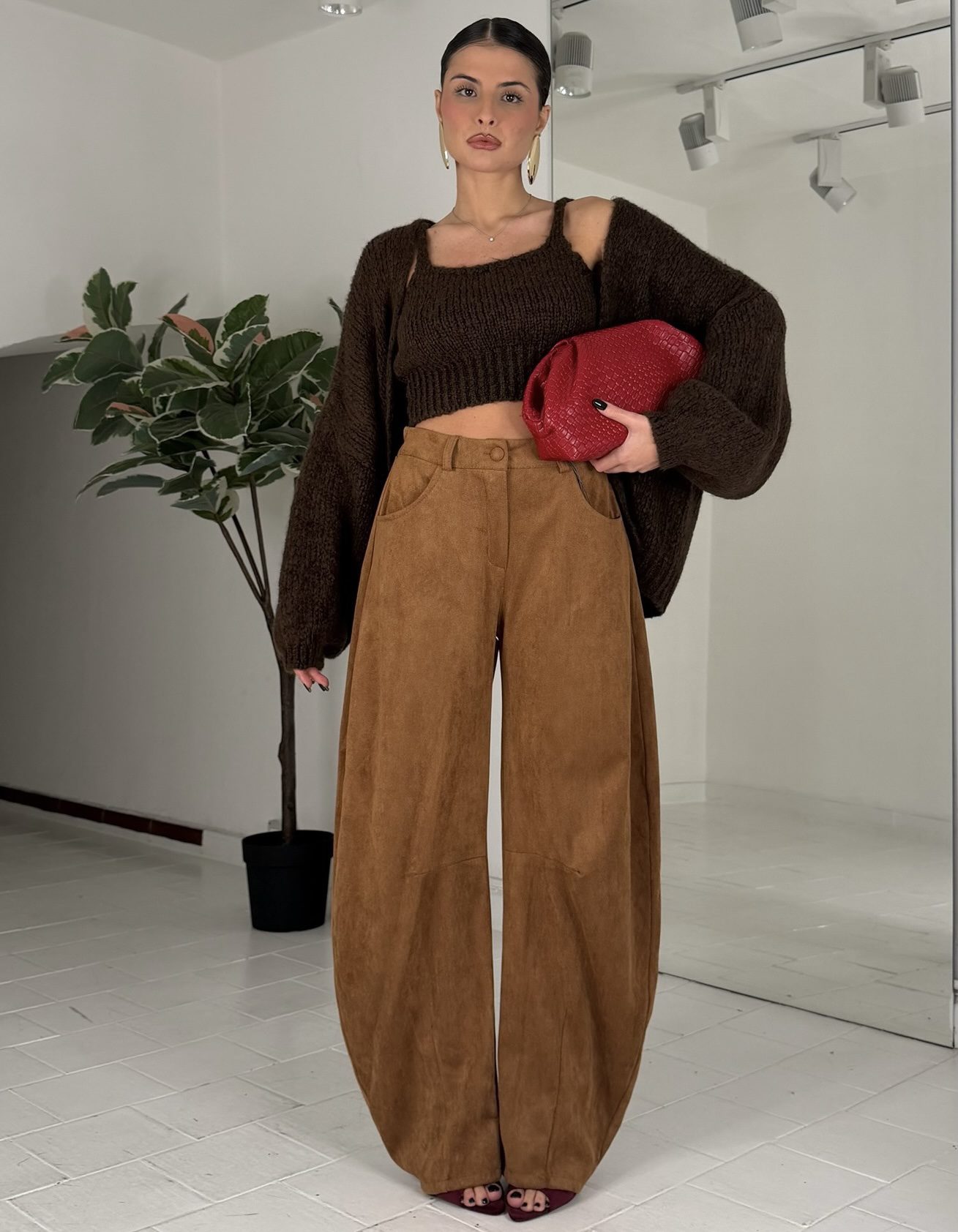 Consiglio da xs ad L, elastico sul retro, in camoscio, con tasche, zip e bottone La modella รจ una taglia S ed รจ alta 1.60cm