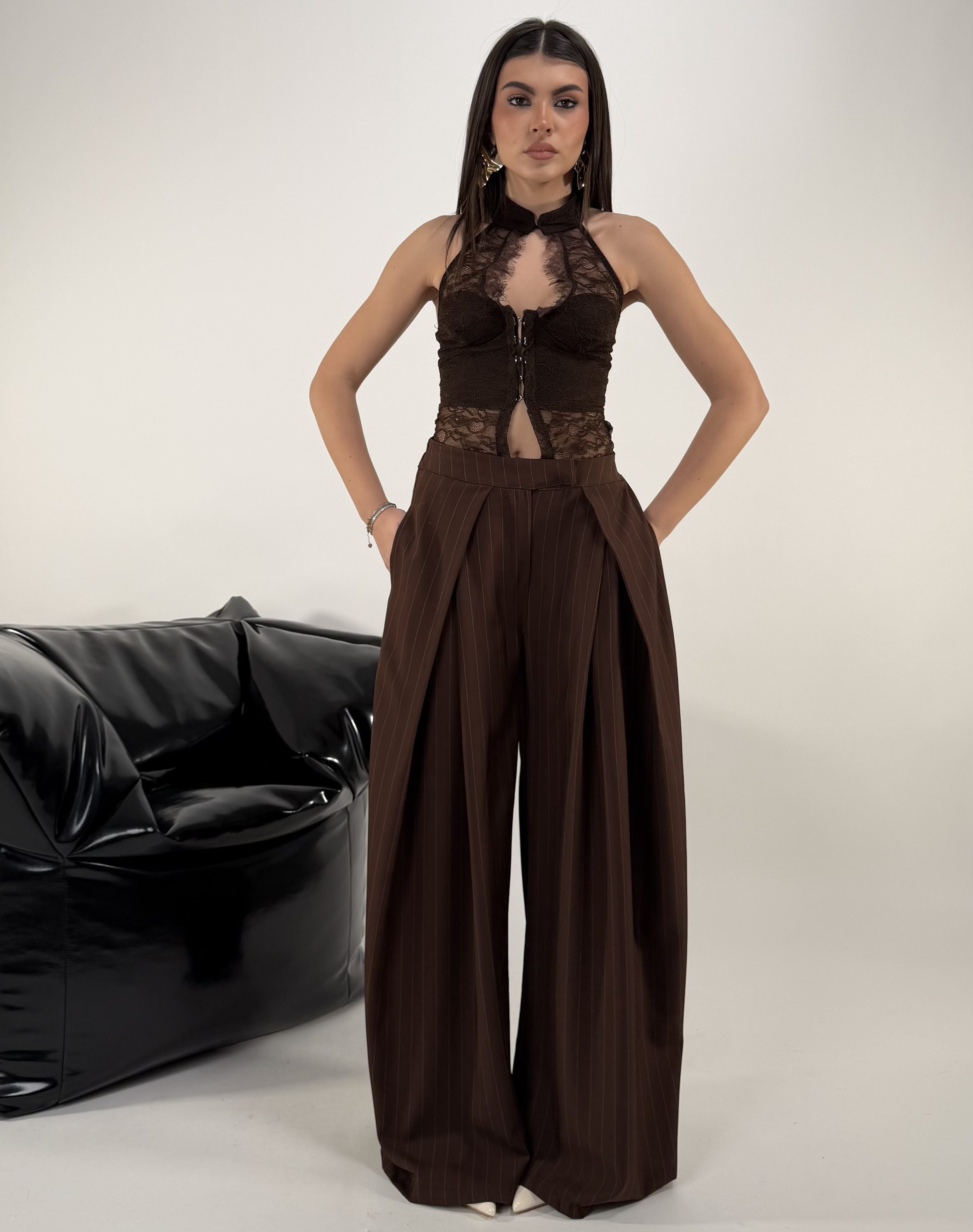 Consiglio da xs ad L, con tasche, bottoni , zip ed elastico sul retro La modella รจ una taglia S ed รจ alta 1.65cm