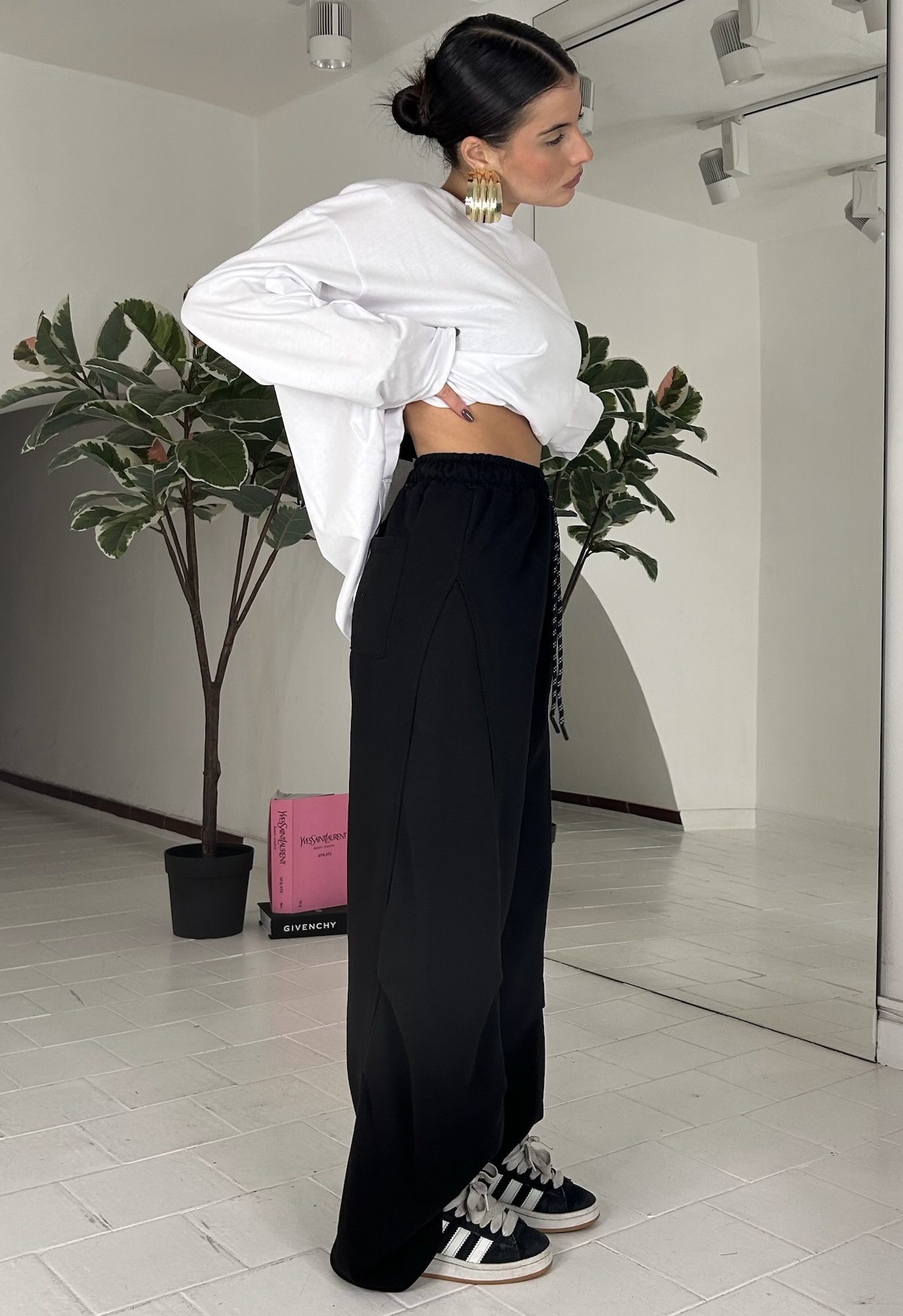 Consiglio da xs ad XL, con elastico in vita e laccetto, effetto Balloon, strutturato, tasche sul retro. La modella รจ una taglia S ed รจ alta 1.60cm