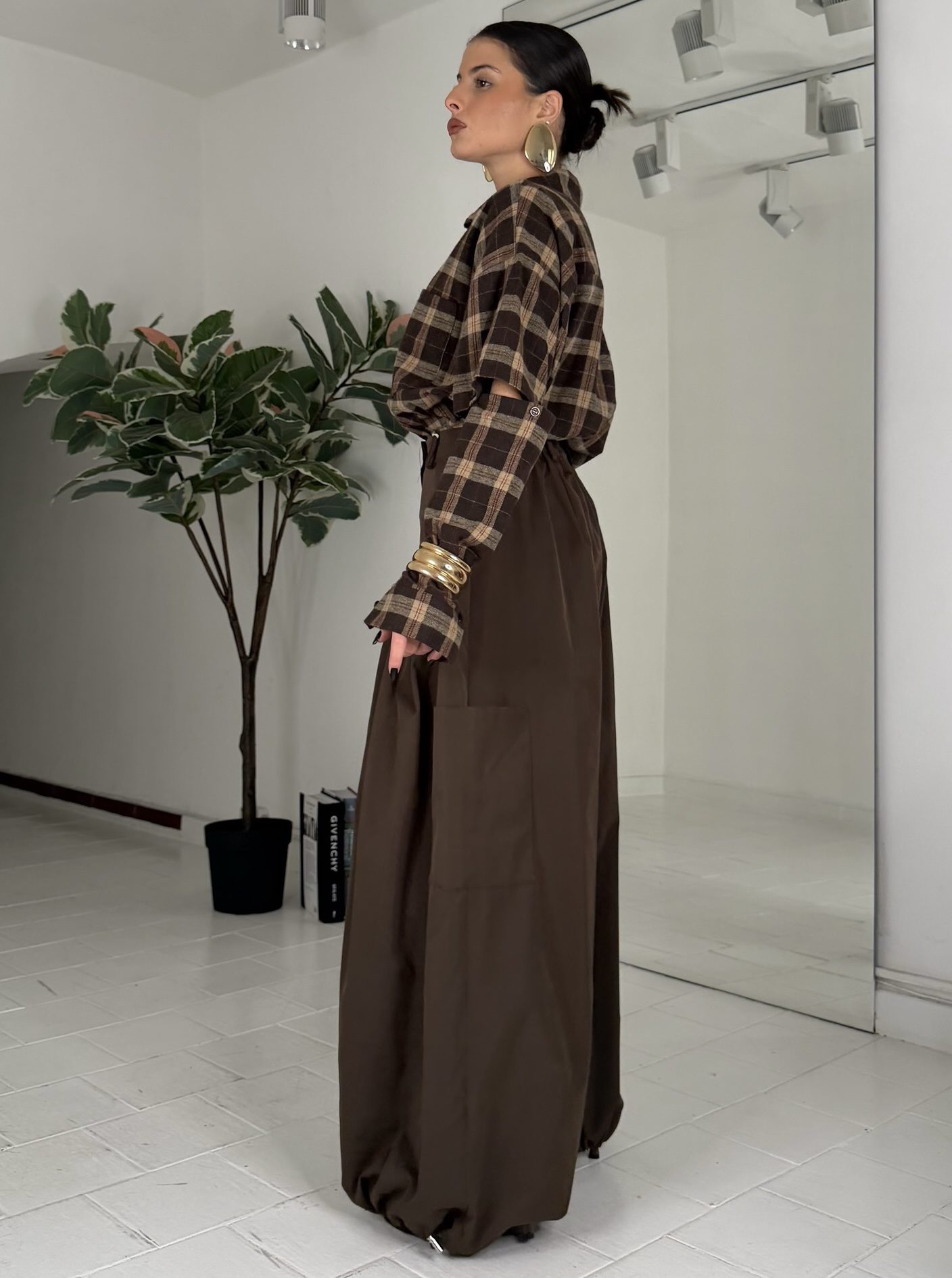 Consiglio da xs ad L, con bottone e passanti. Con elastico sul retro ed elastico regolabile ad altezza caviglia. La modella รจ una taglia S ed รจ alta 1,60cm