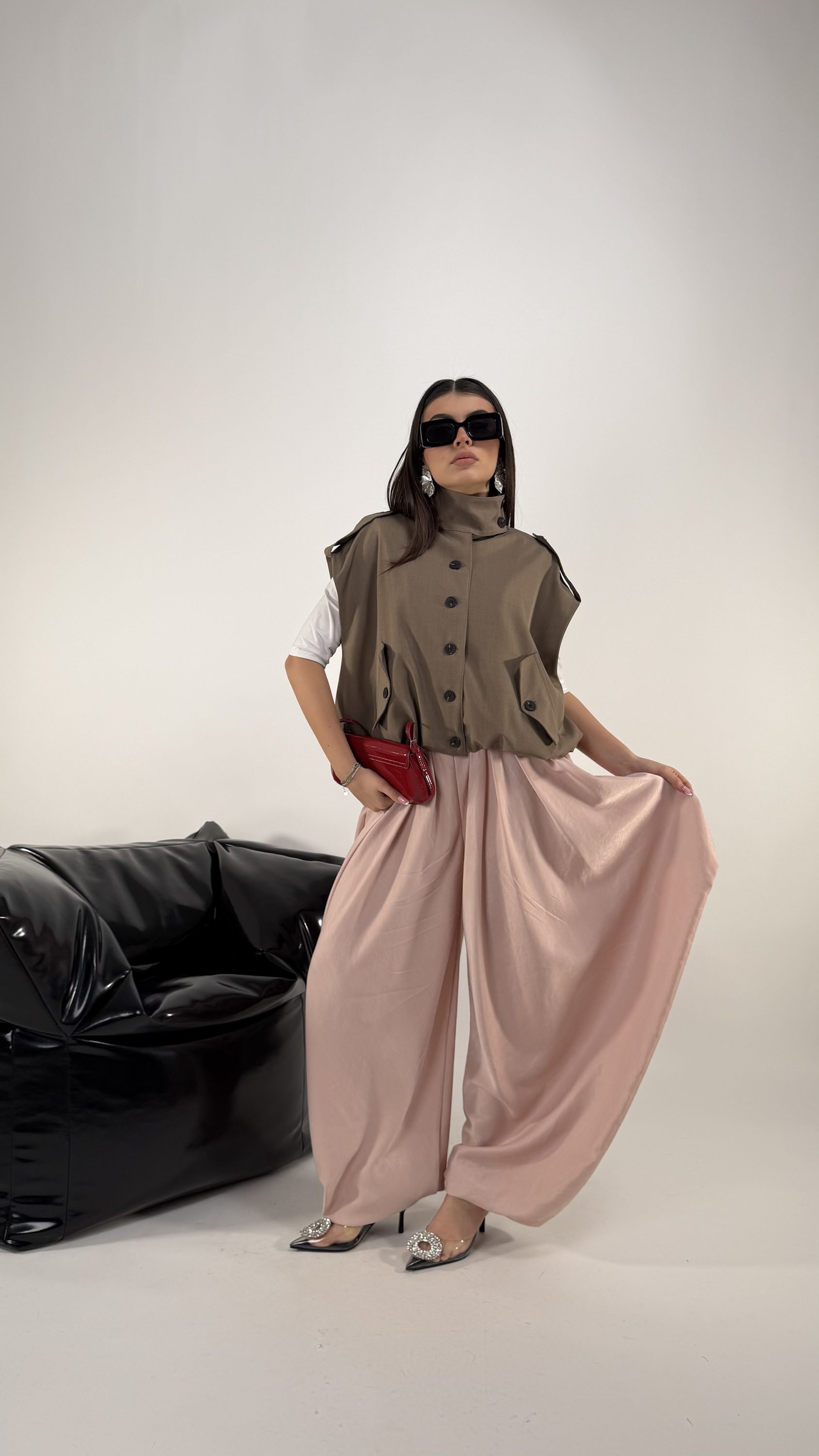 Consiglio da xs ad XL, bottone dietro il collo, fiocco regolabile in vita, elastico in vita. La modella รจ una taglia S ed รจ alta 1.65cm