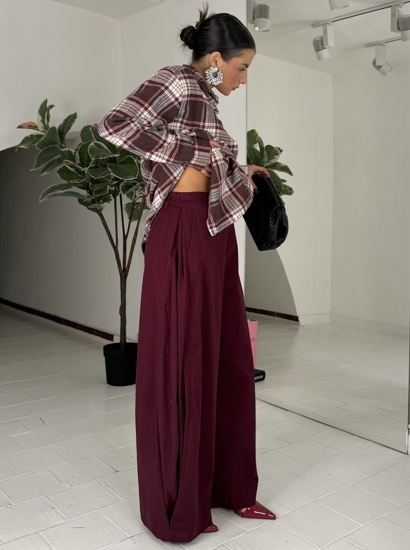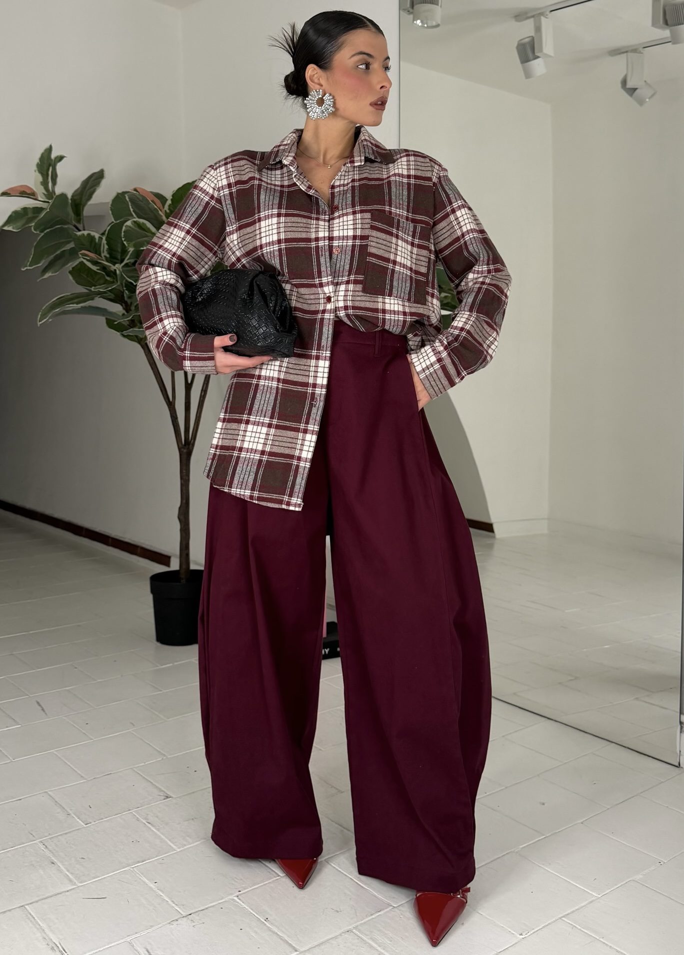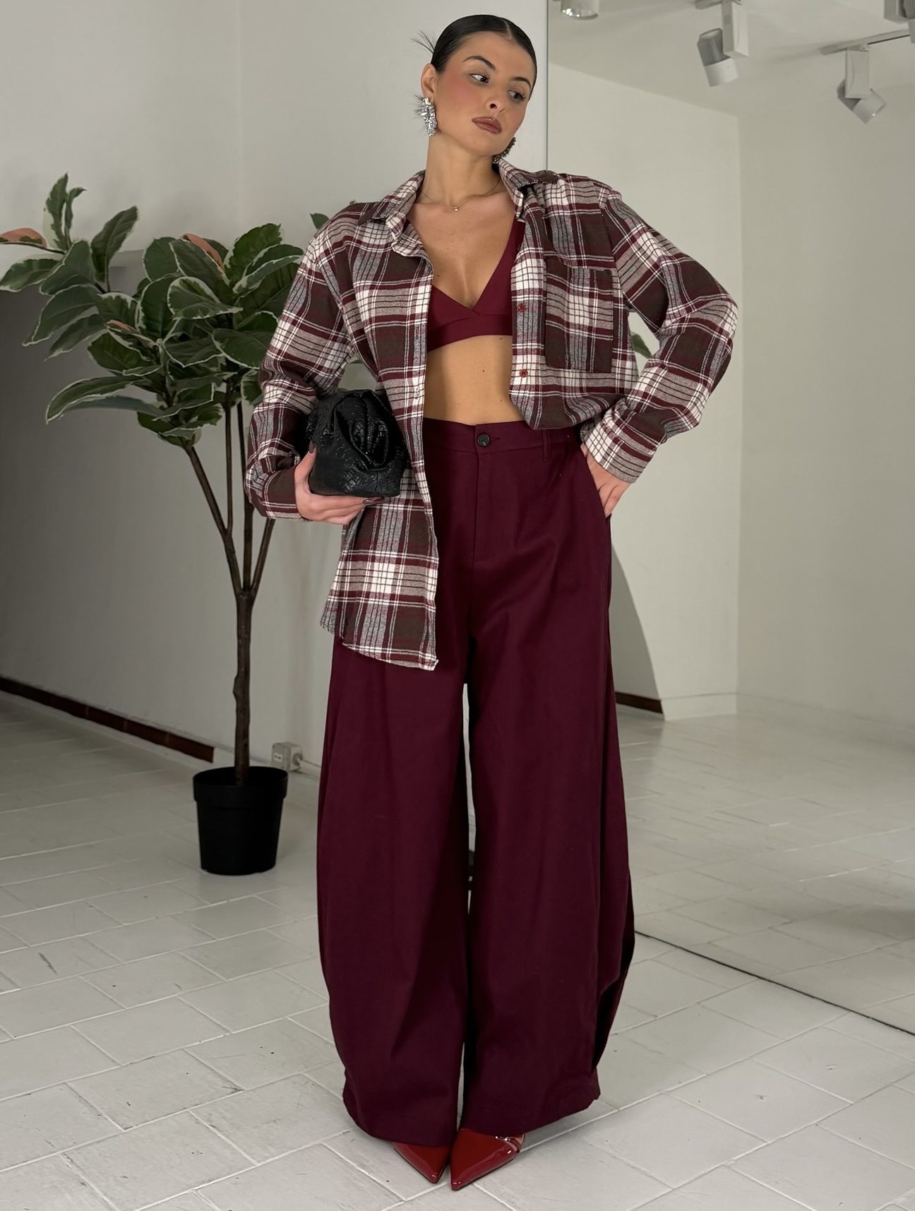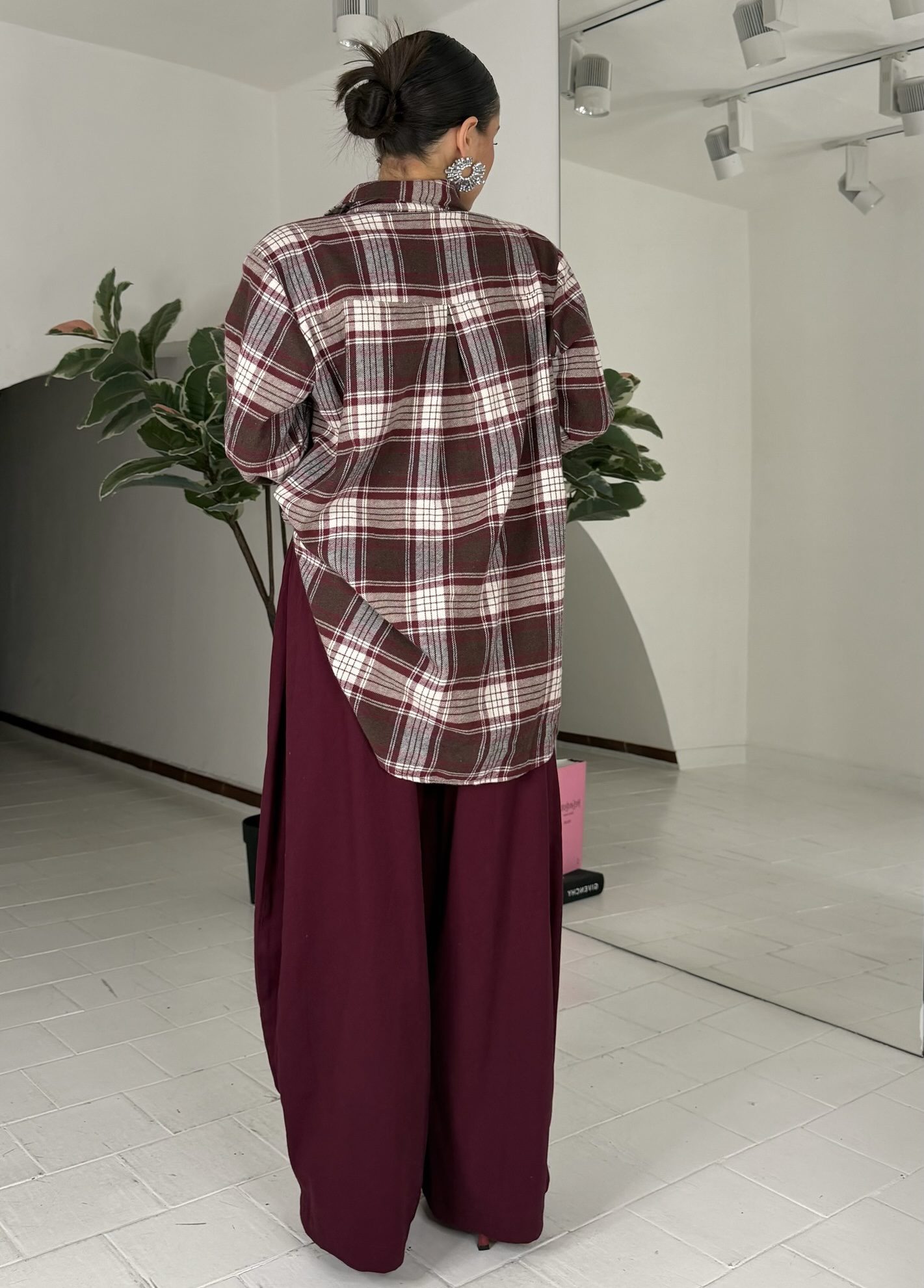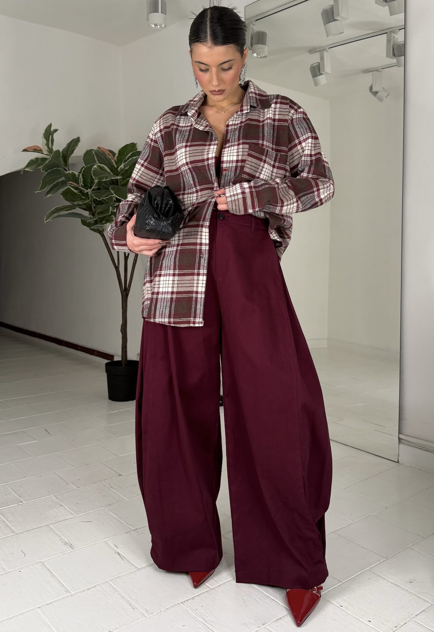 Coniglio da xs ad L, elastico sul retro, con tasche e bottone, passanti e zip, misto velluto. La modella รจ alta 1.60cm ed รจ una taglia S