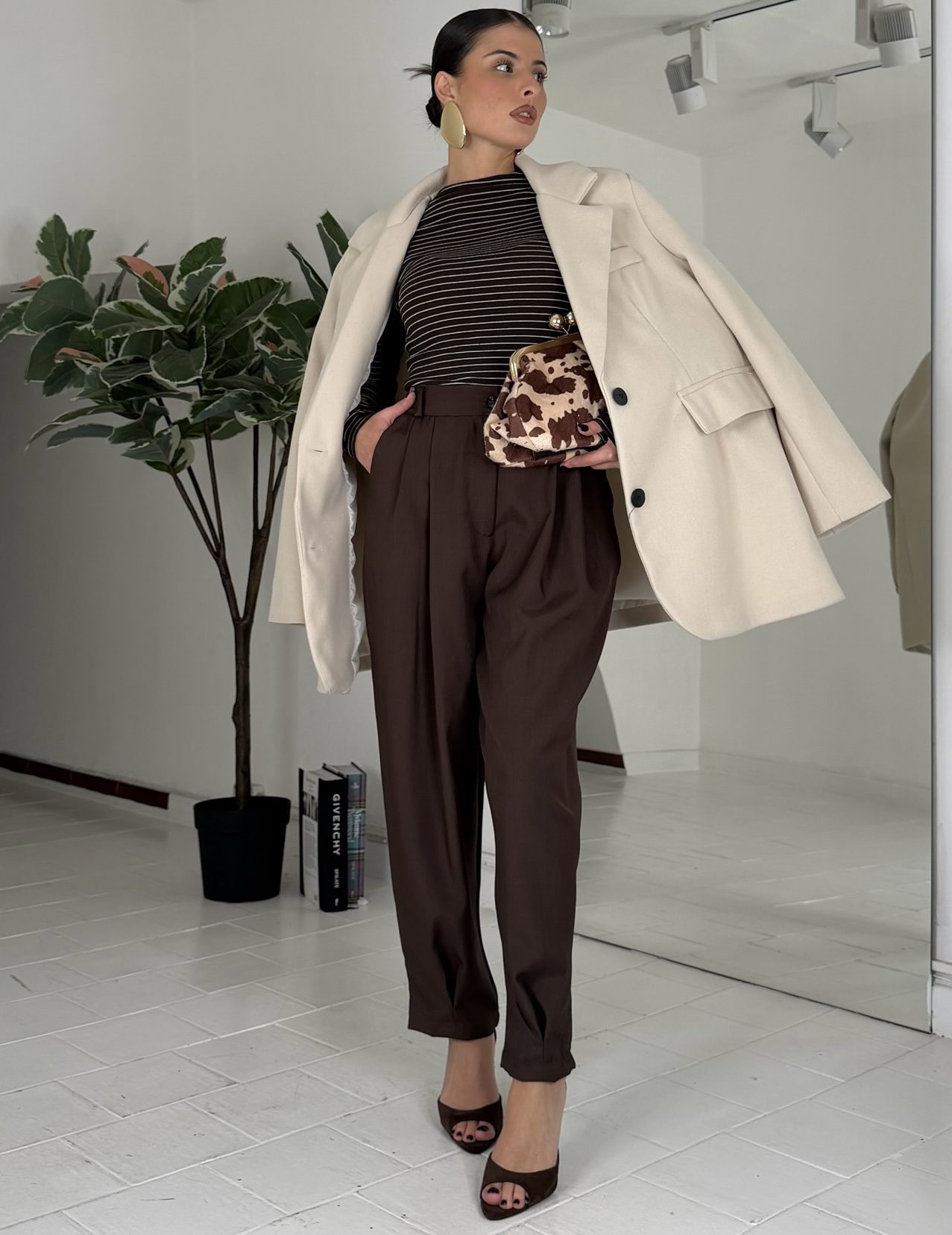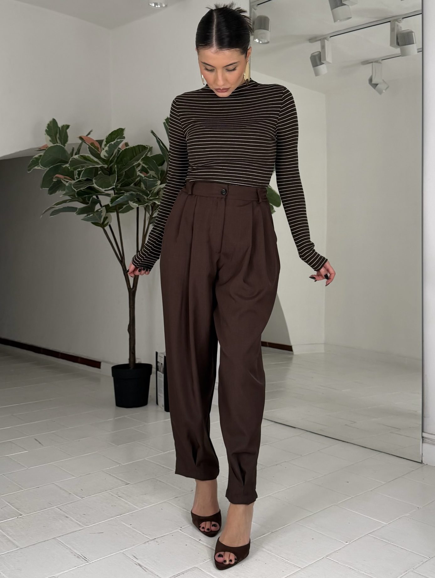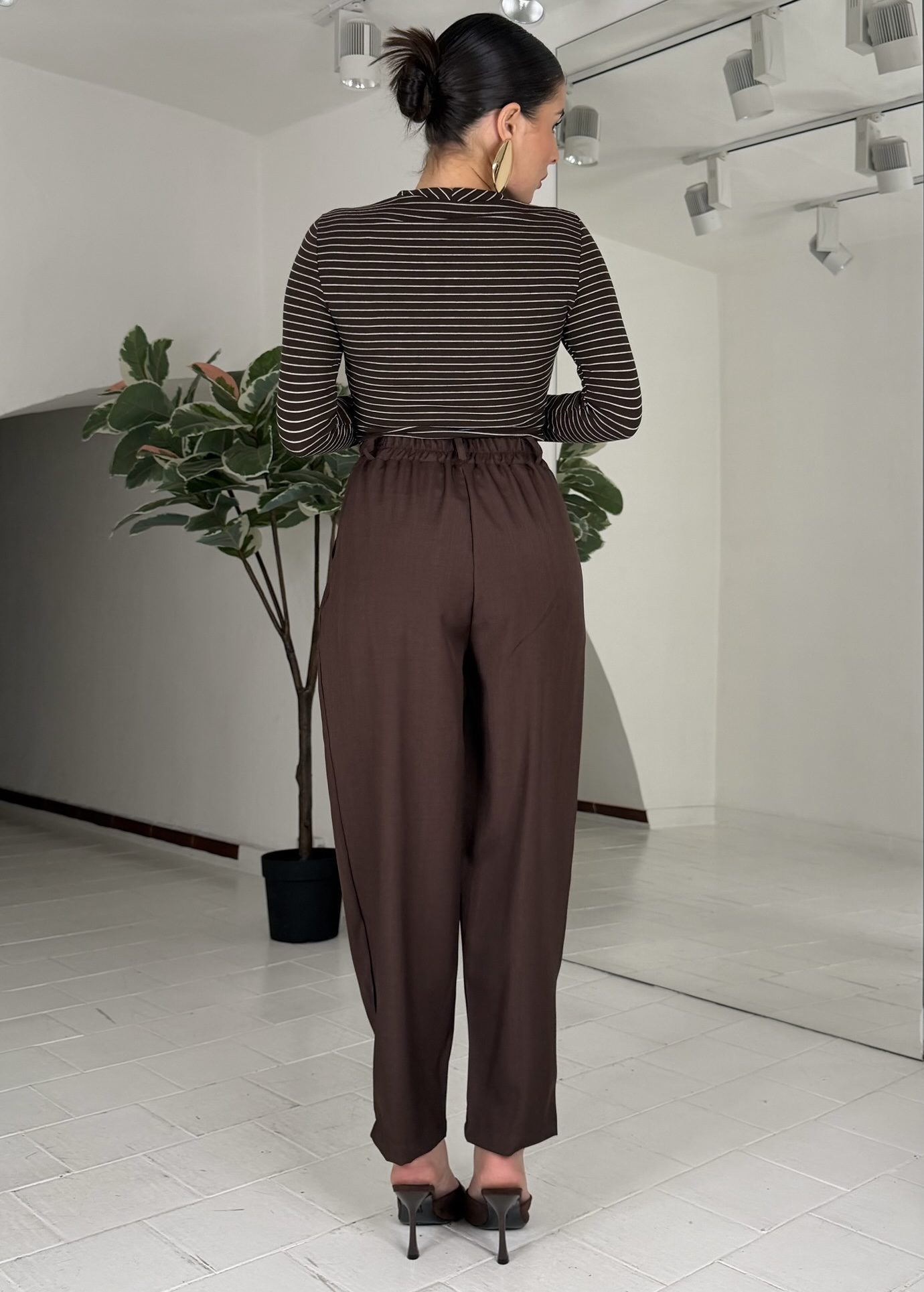 Consiglio da xs ad XL, passanti, bottone e zip, con elastico sul retro. La modella รจ una taglia S ed รจ alta 1.60cm