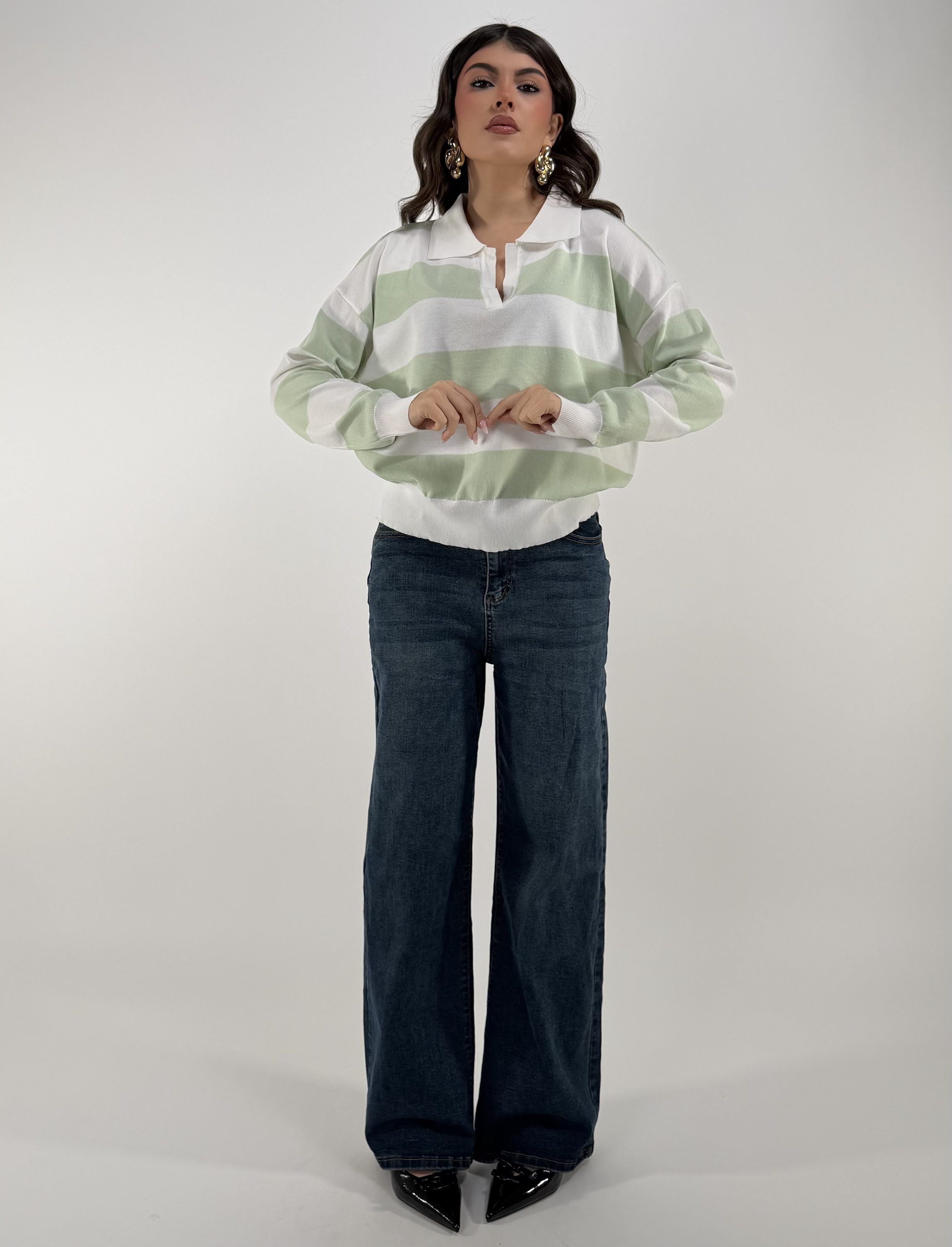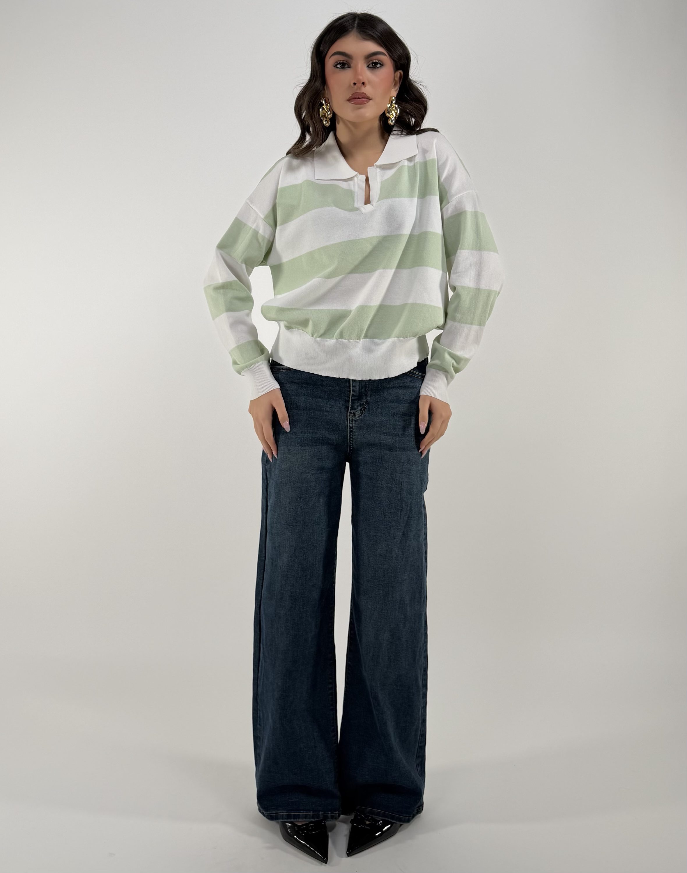 Consiglio da xs ad L, over, modello Polo. La modella รจ una taglia S ed รจ alta 1.65cm
