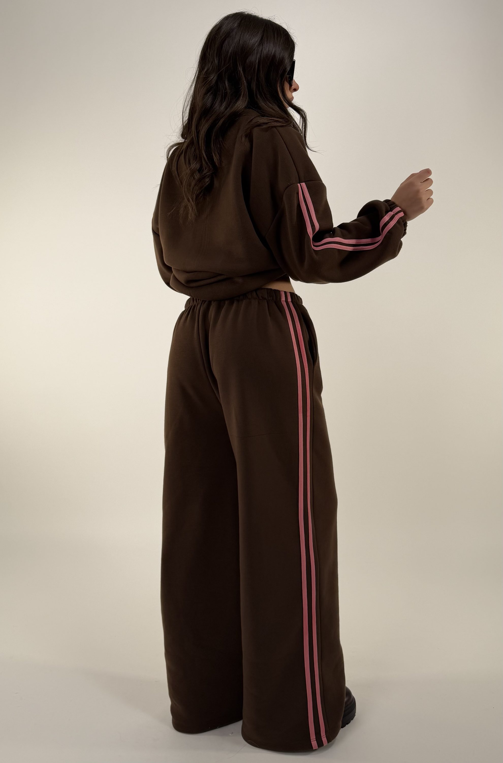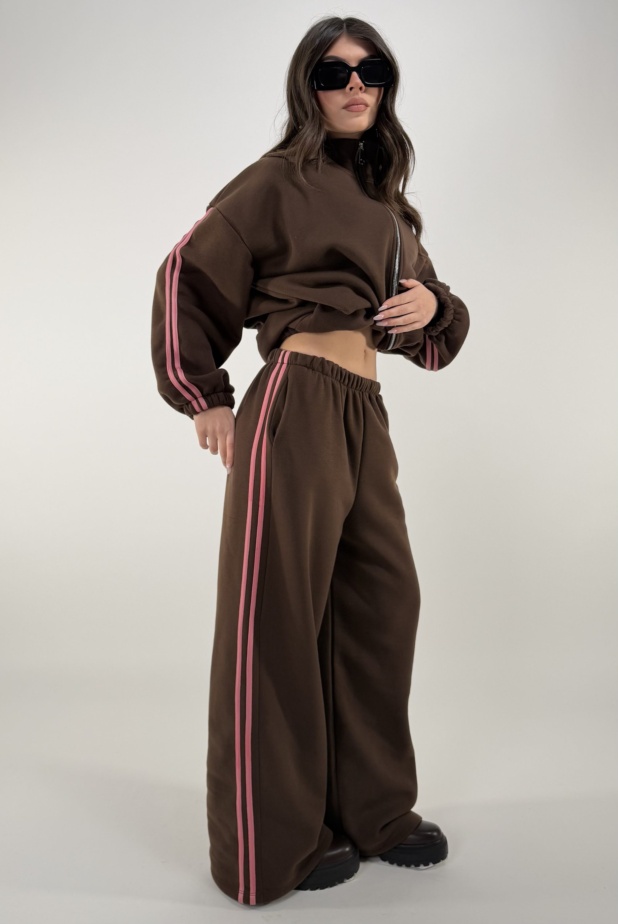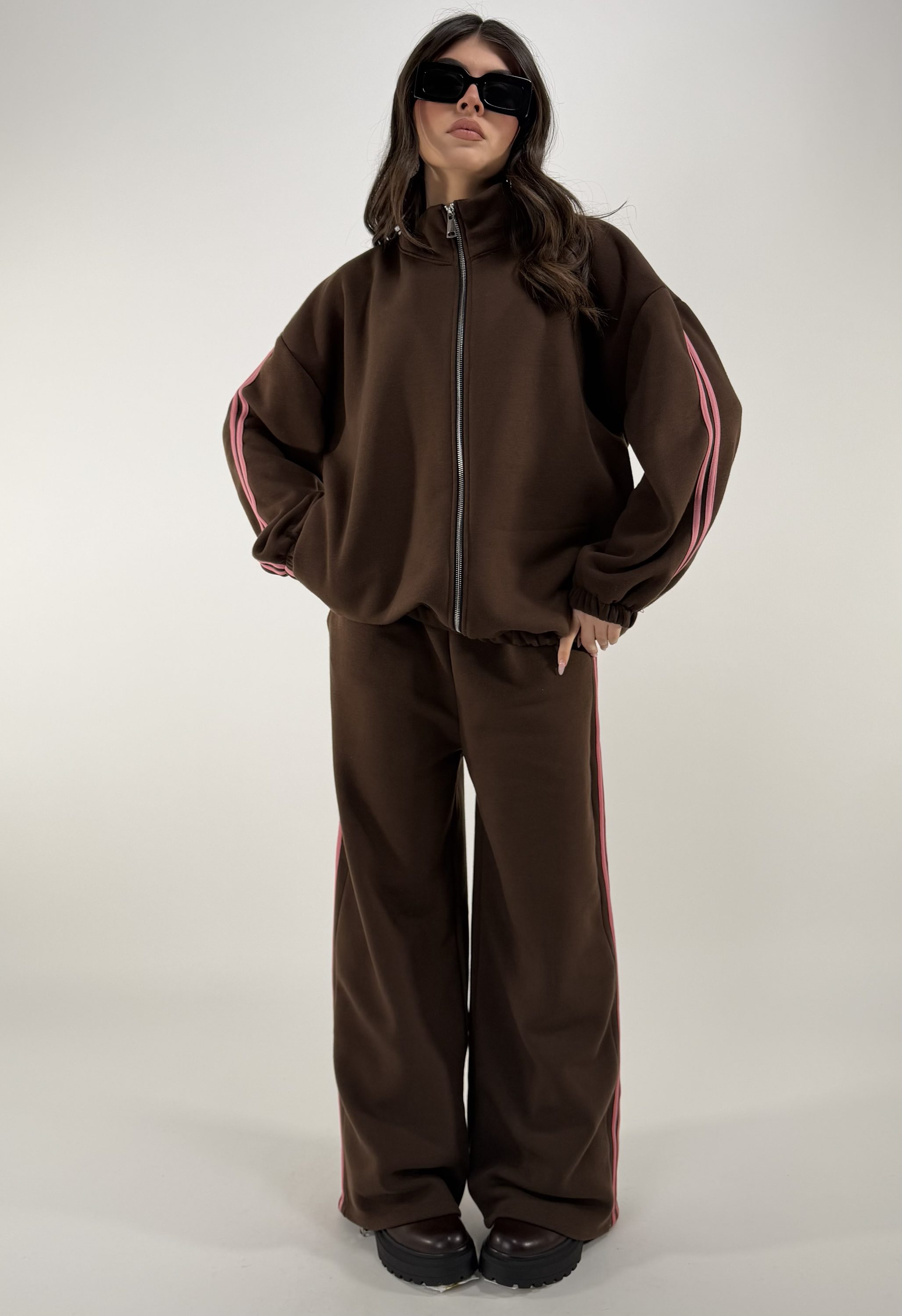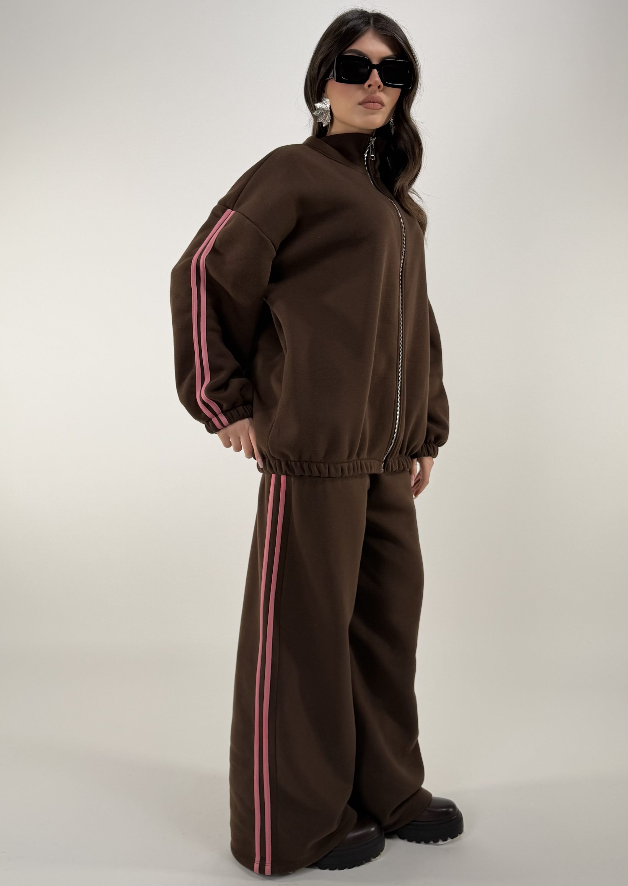Consiglio da xs ad XL. Pantalone con elastico in vita e tasche; giacca con zip, elastico alla base e sui polsi,con tasche. La modella รจ una taglia S ed รจ alta 1.65cm