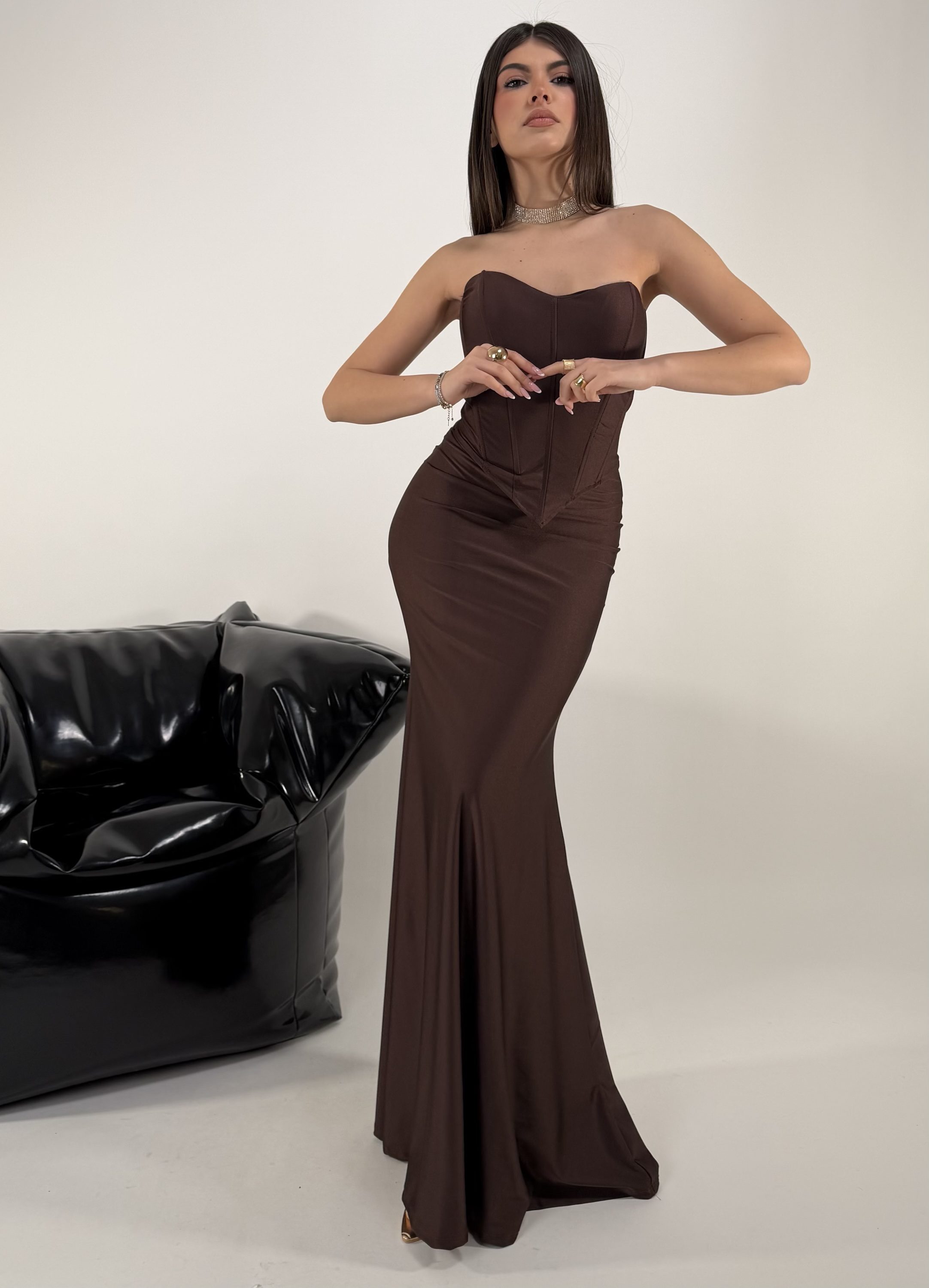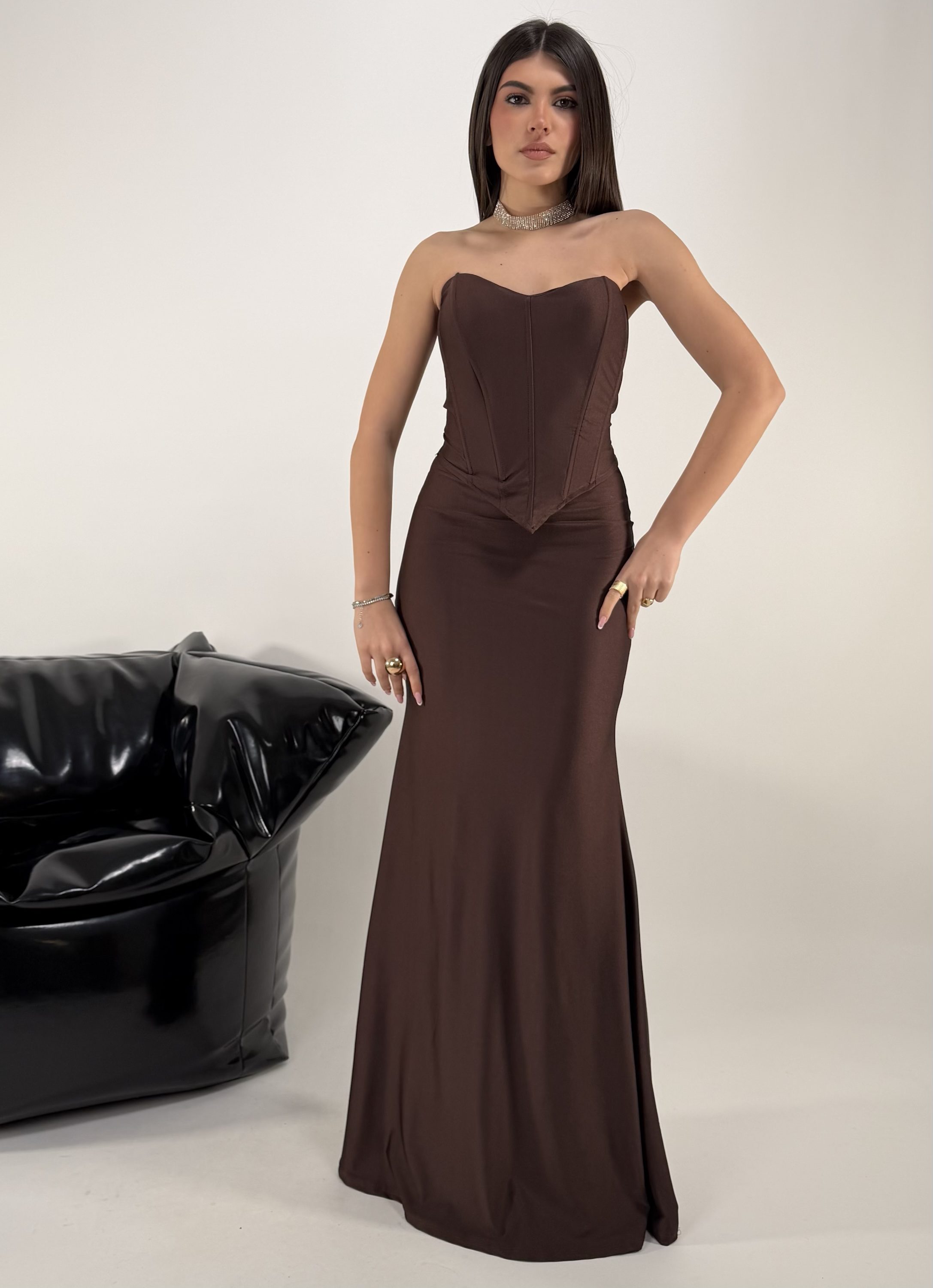 Consiglio da xs ad L, elasticizzato, con coppe e stecche. La modella รจ una raglia S ed รจ alta 1.65cm... read more