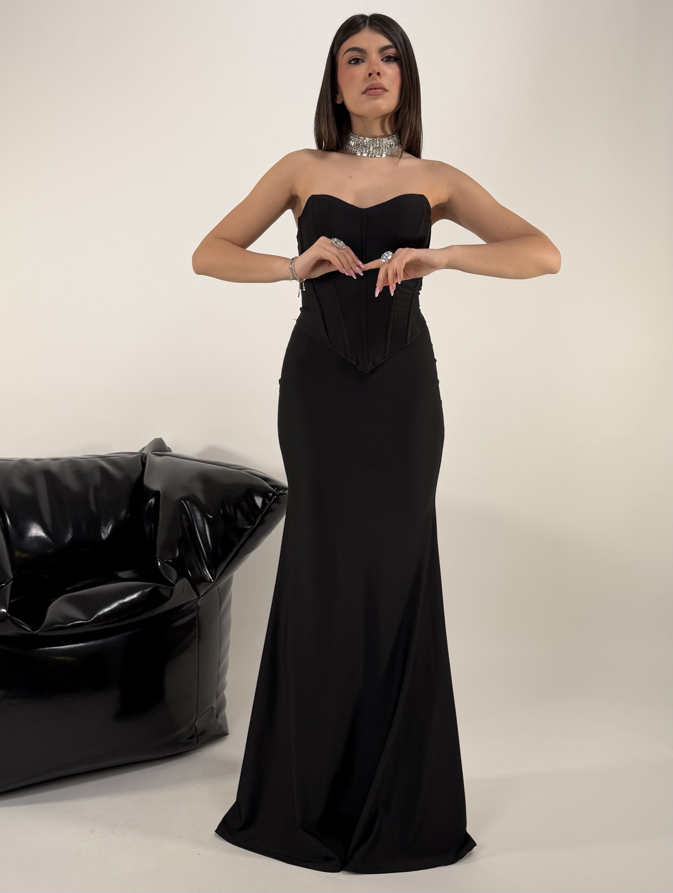Consiglio da xs ad L, elasticizzato, con coppe e stecche. La modella รจ una raglia S ed รจ alta 1.65cm