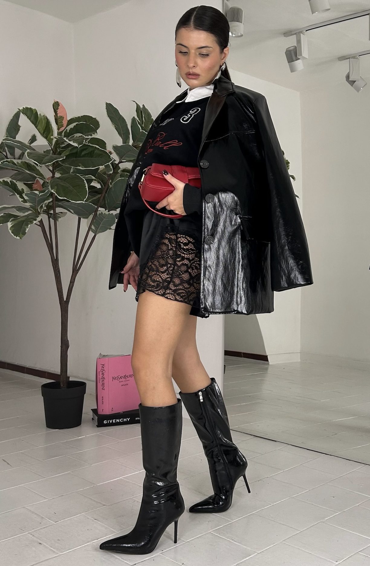 Consiglio da xs ad L, con elastico in vita, in satin e pizzo. La modella รจ una taglia S ed รจ alta 1.60cm