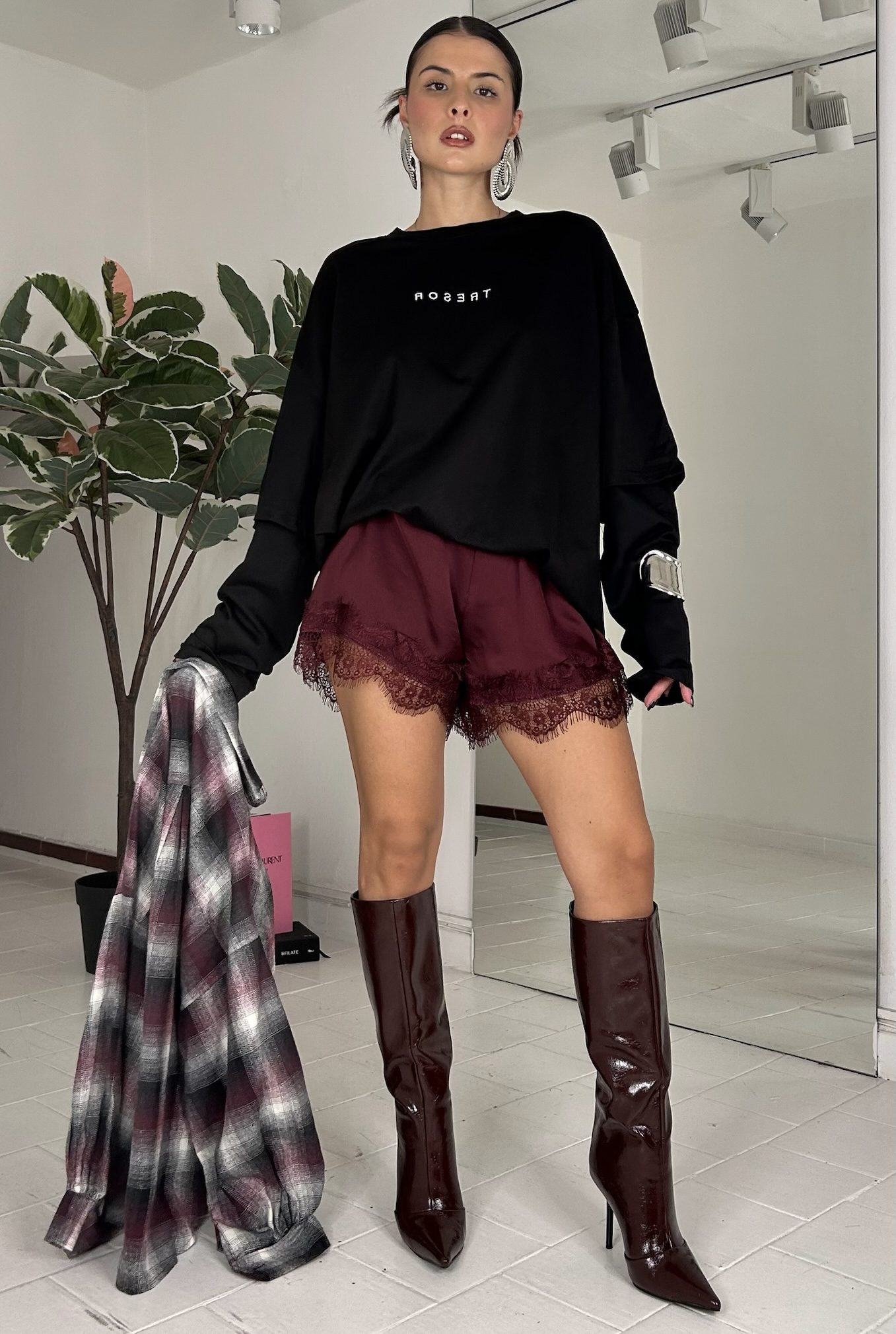 Consiglio da xs ad XL, in satin, elastico in vita. L modella รจ una taglia S ed รจ alta 1.60cm