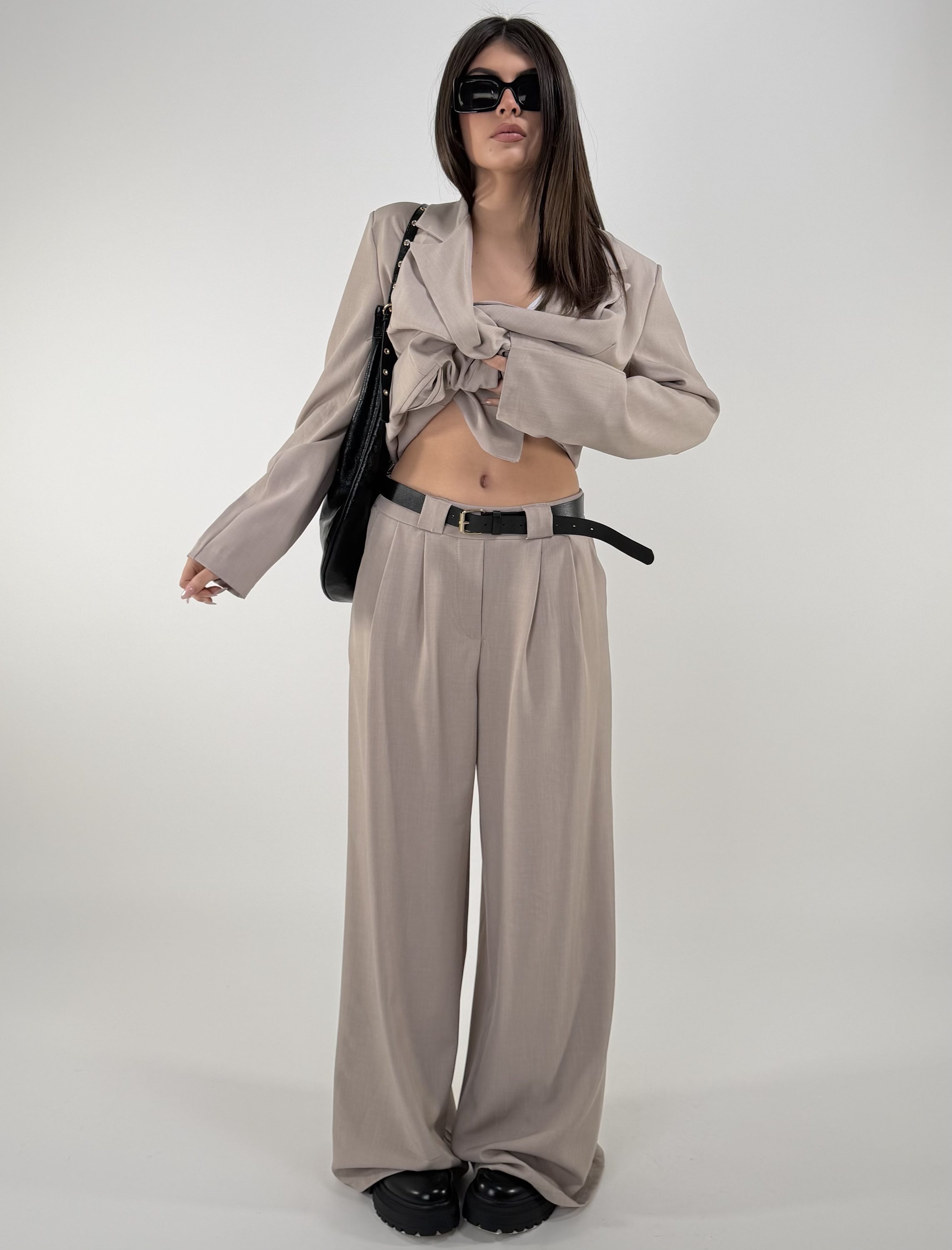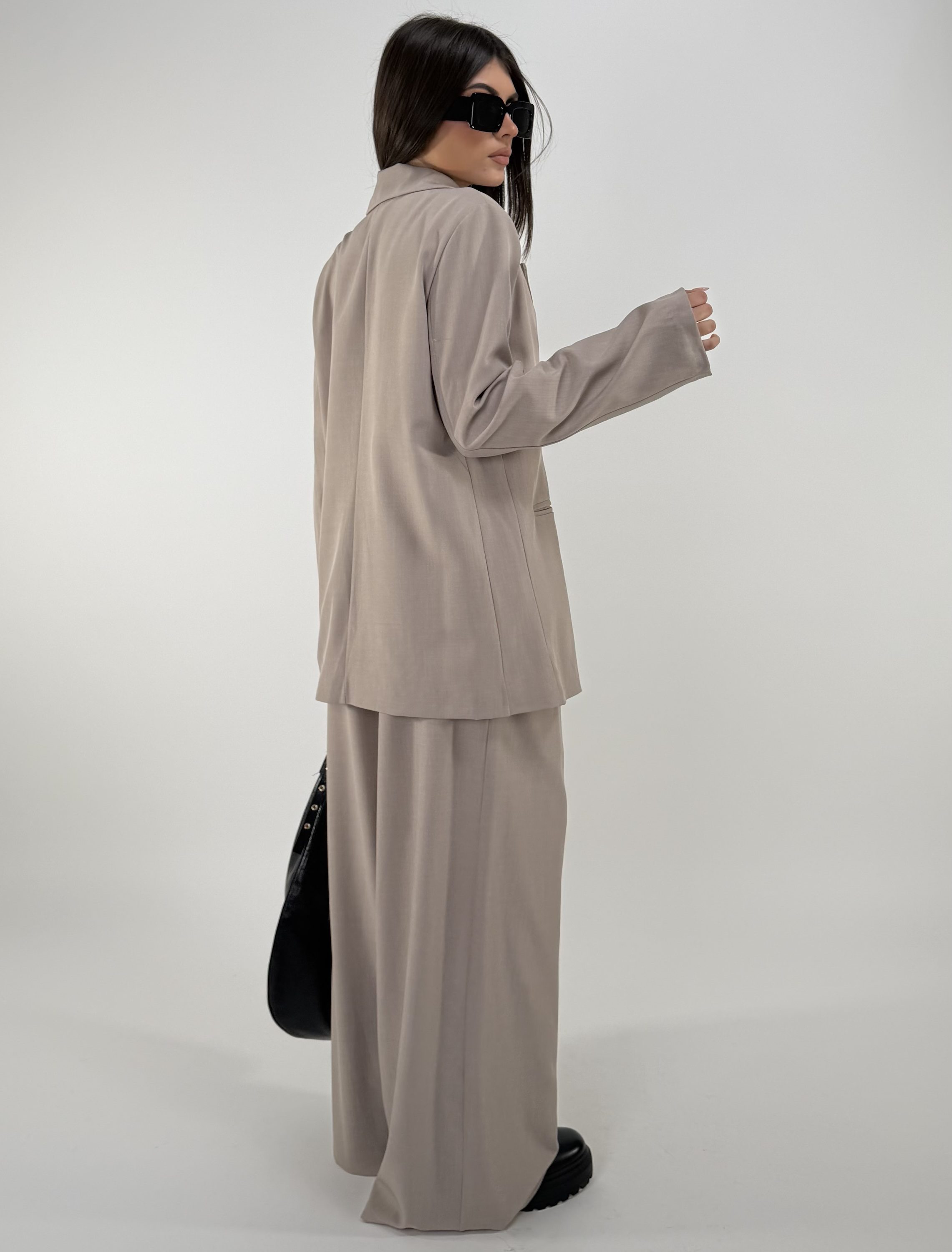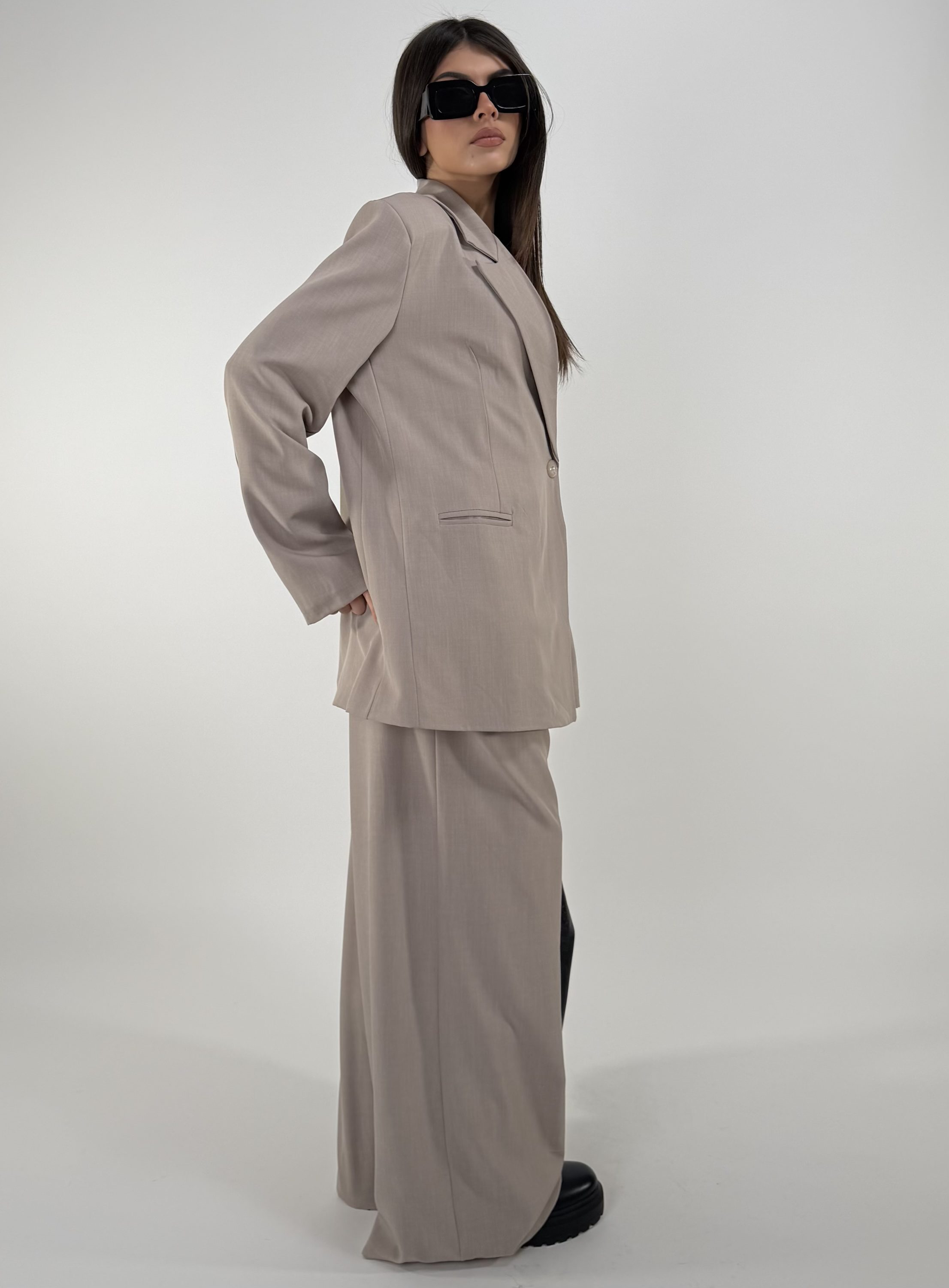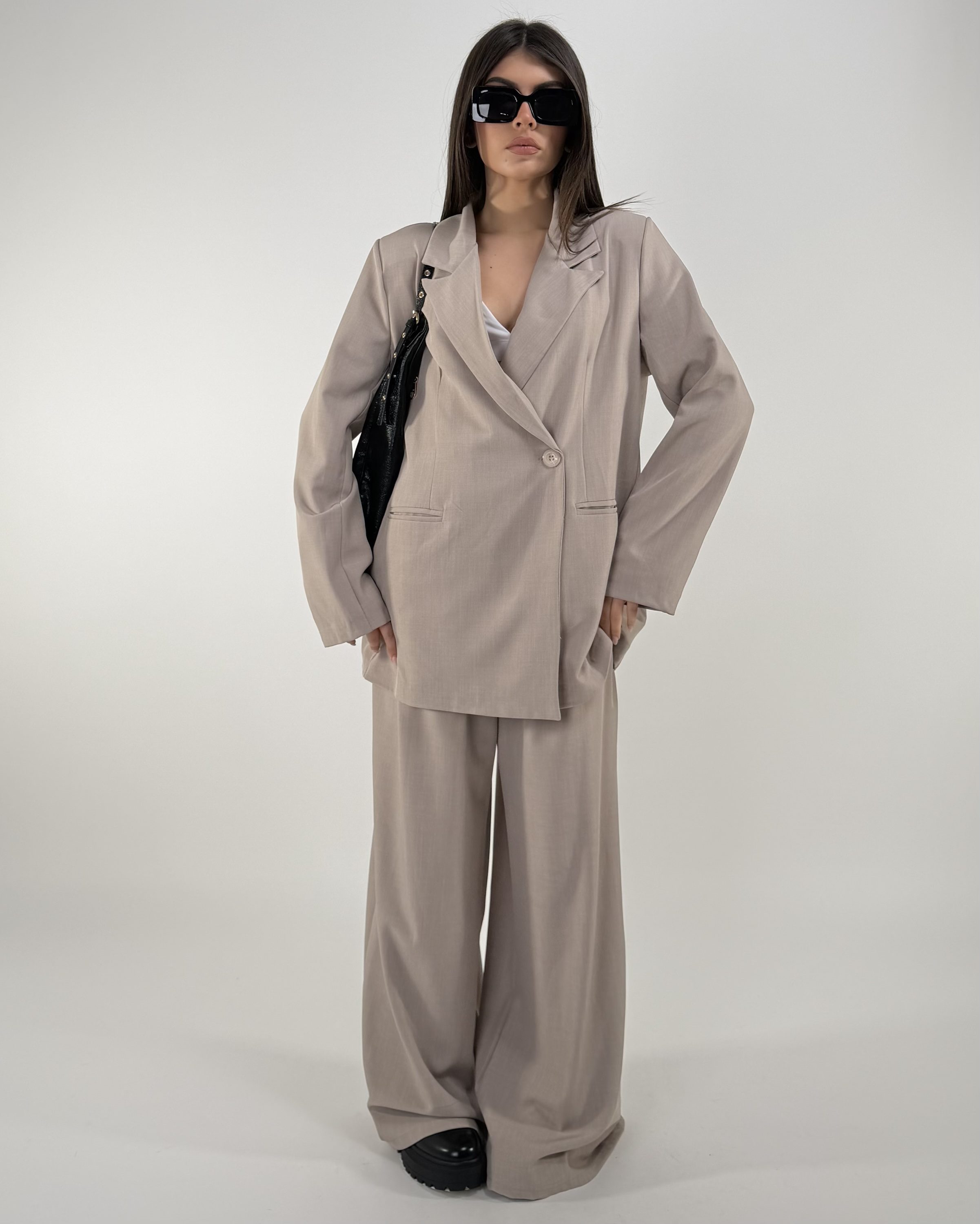 Consiglio da xs ad XL. Pantalone con elastico sul retro, con cintura inclusa, passanti, zip, bottone e tasche. Blazer con spalline rinforzate e bottoni. La modella รจ una taglia S ed รจ alta 1.65cm