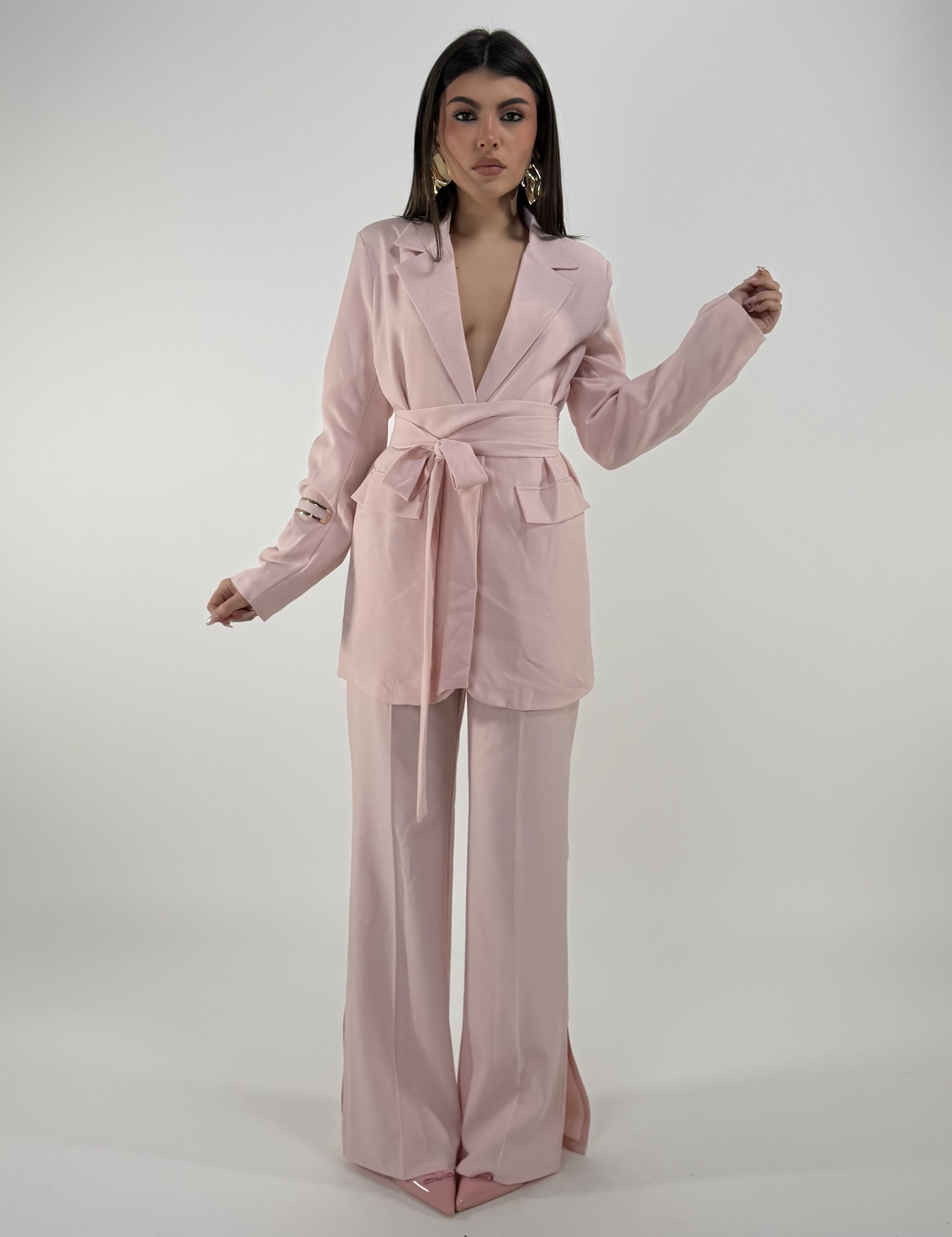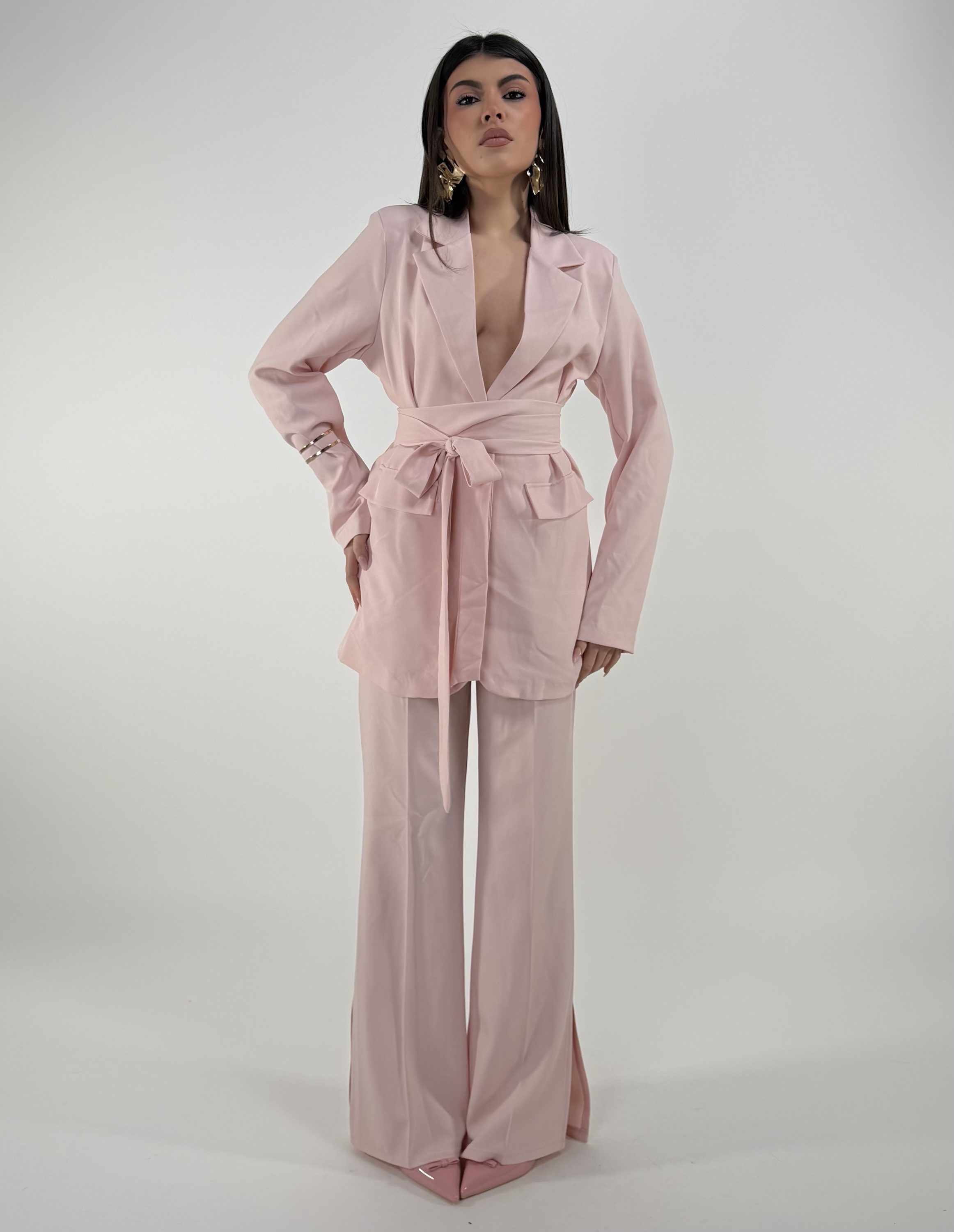 Consiglio da xs ad XL. Pantalone con elastico sul retro, con zip , bottone, passanti e tasche. Il blazer con bottone, spalline rinforzate, fiocco in vita regolabile e rimovibile. La modella รจ una ta... read more