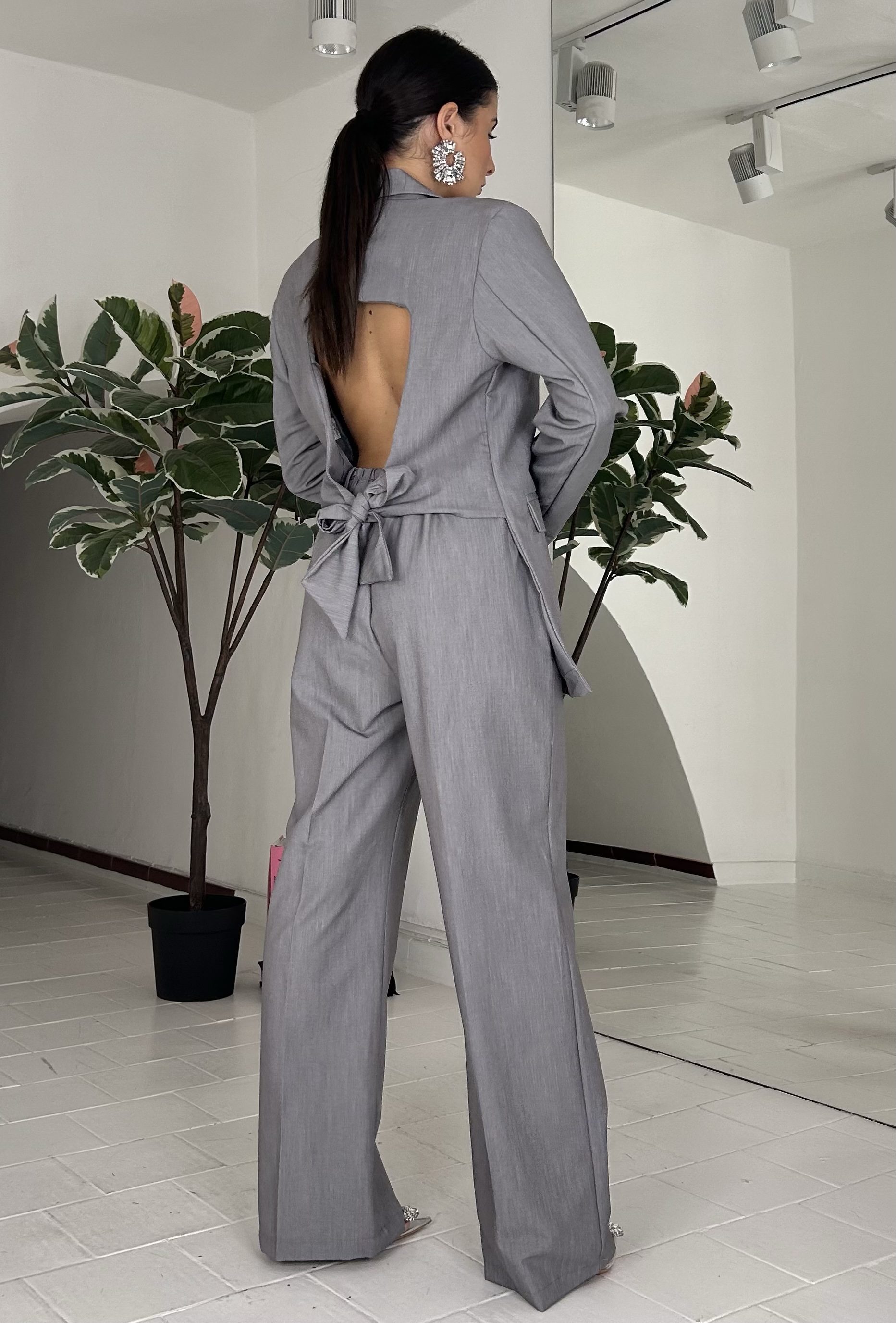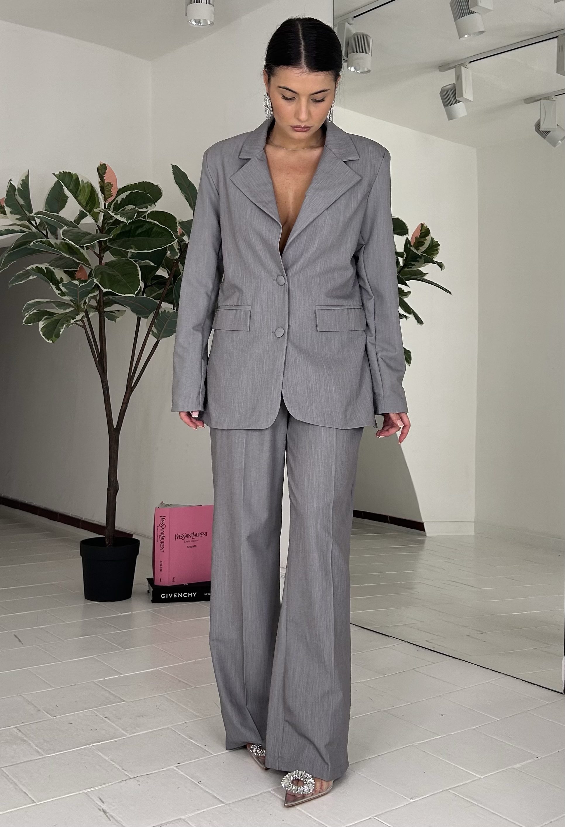 Consiglio da xs ad L. Blazer con bottoni, foderato. Pantalone elastico sul retro, con tasche e bottone. La modella รจ una taglia S ed รจ alta 1.60cm