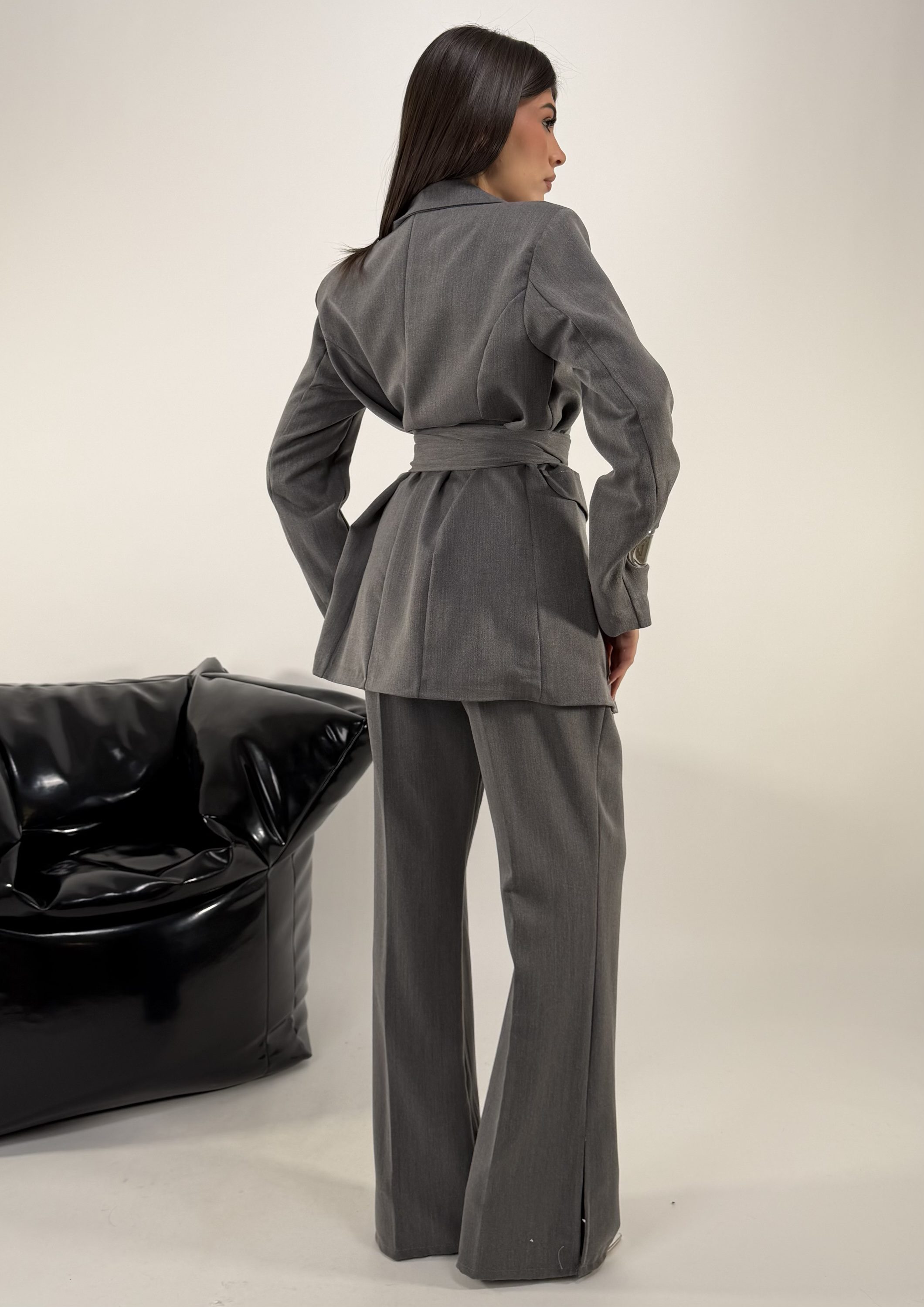 Consiglio da xs ad XL. Pantalone con elastico sul retro, con zip, bottone,tasche e passanti. Blazer con spalline rinforzate e bottone La modella รจ una taglia S ed รจ alta 1.65