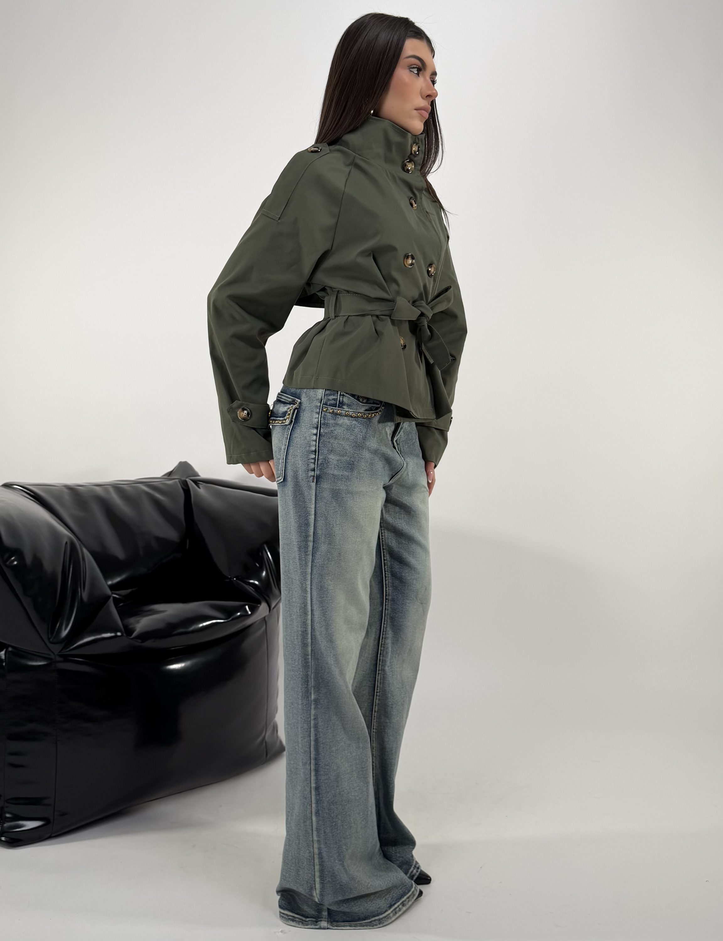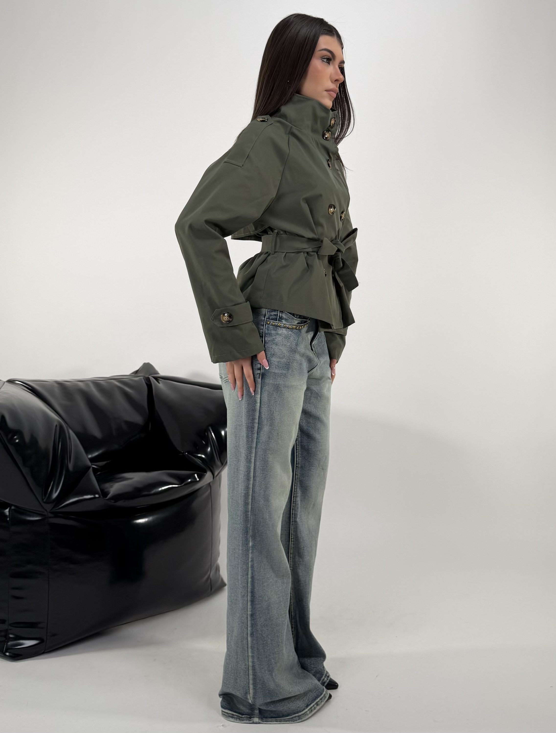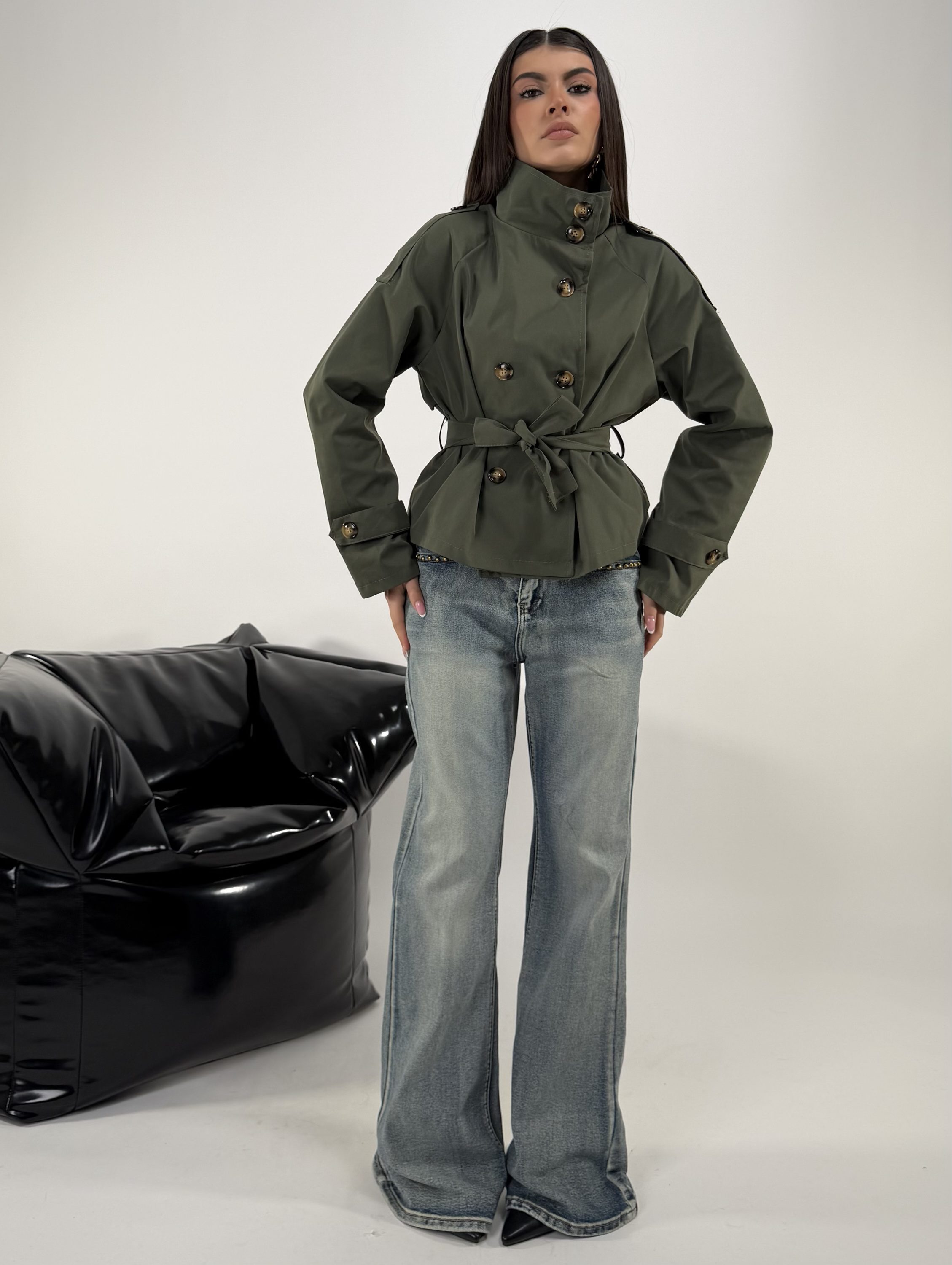 Consiglio da xs ad L, con bottoni, cintura e passanti. La modella รจ una taglia S ed รจ alta 1.65cm