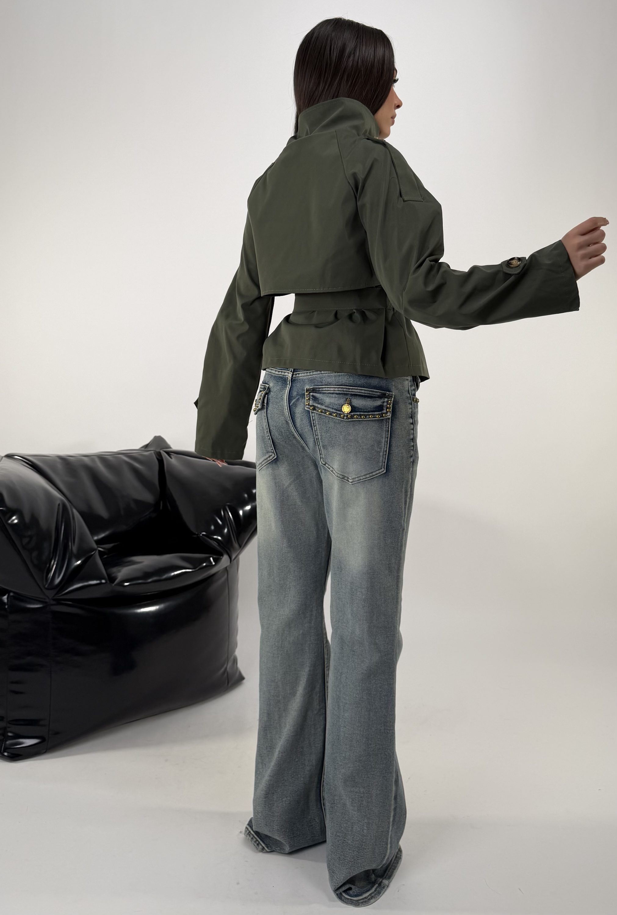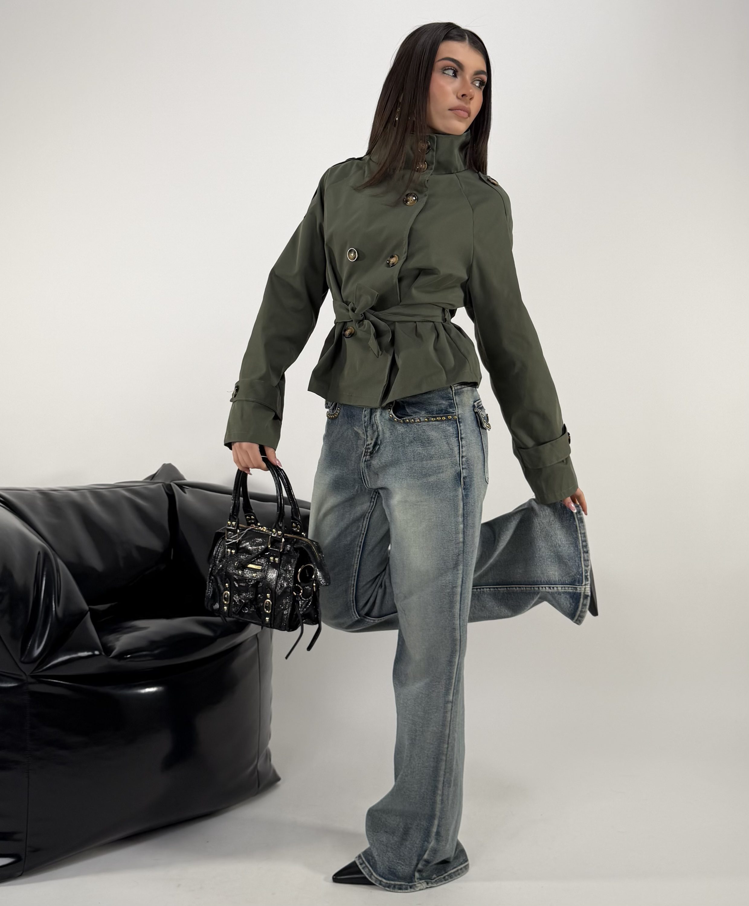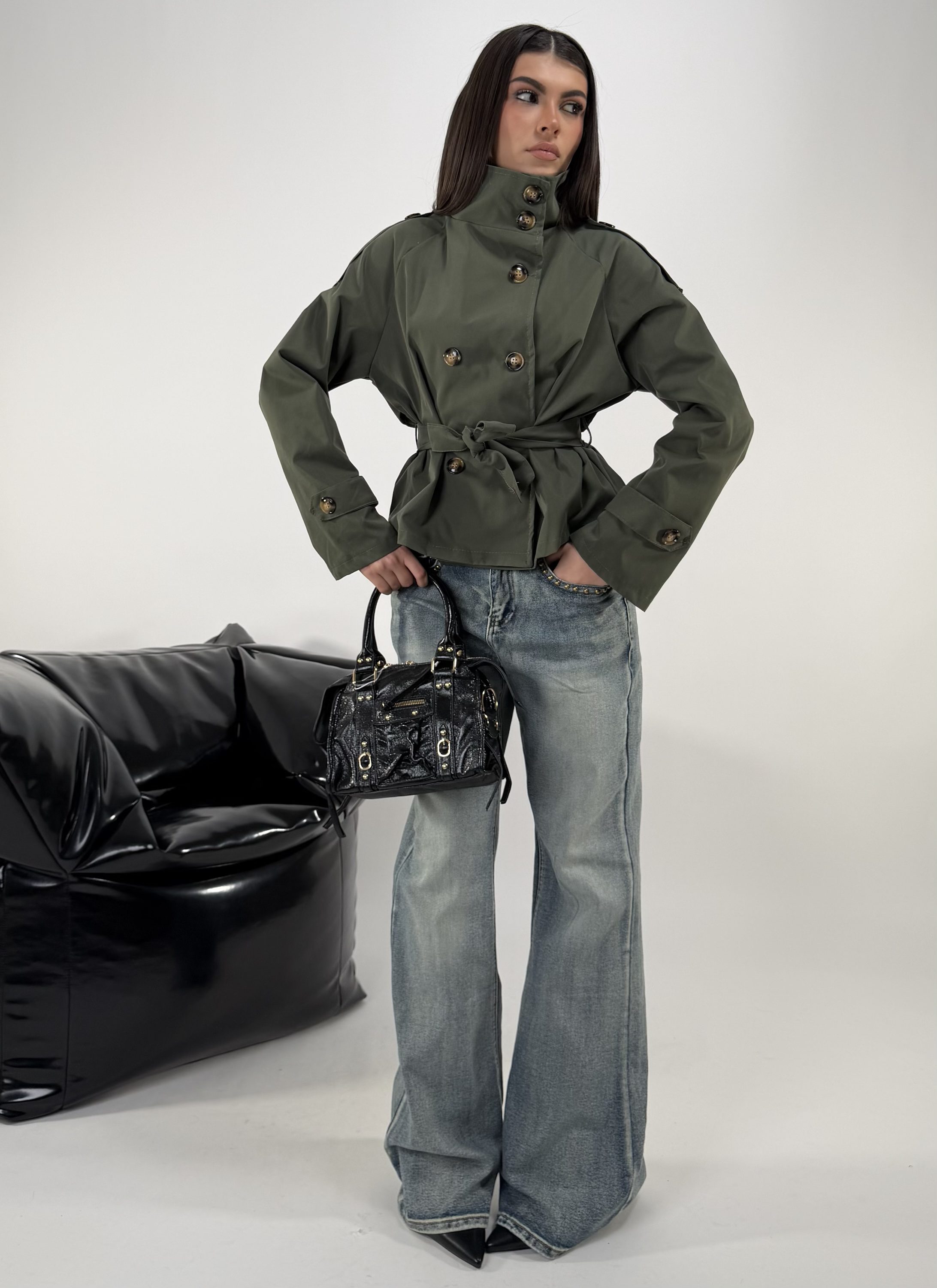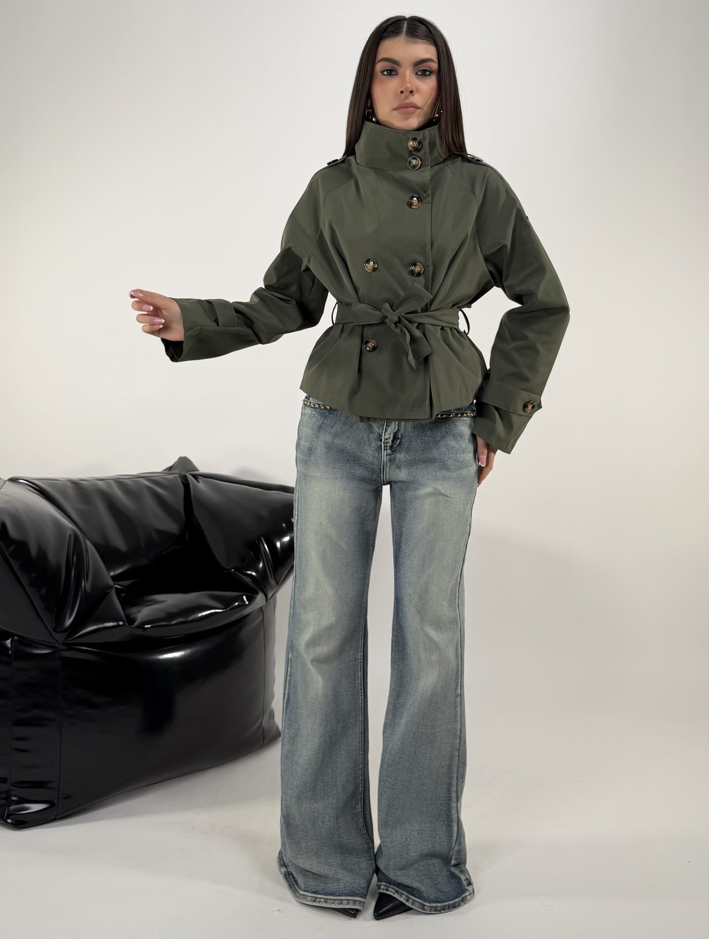 Consiglio da xs ad L, con bottoni, cintura e passanti. La modella รจ una taglia S ed รจ alta 1.65cm