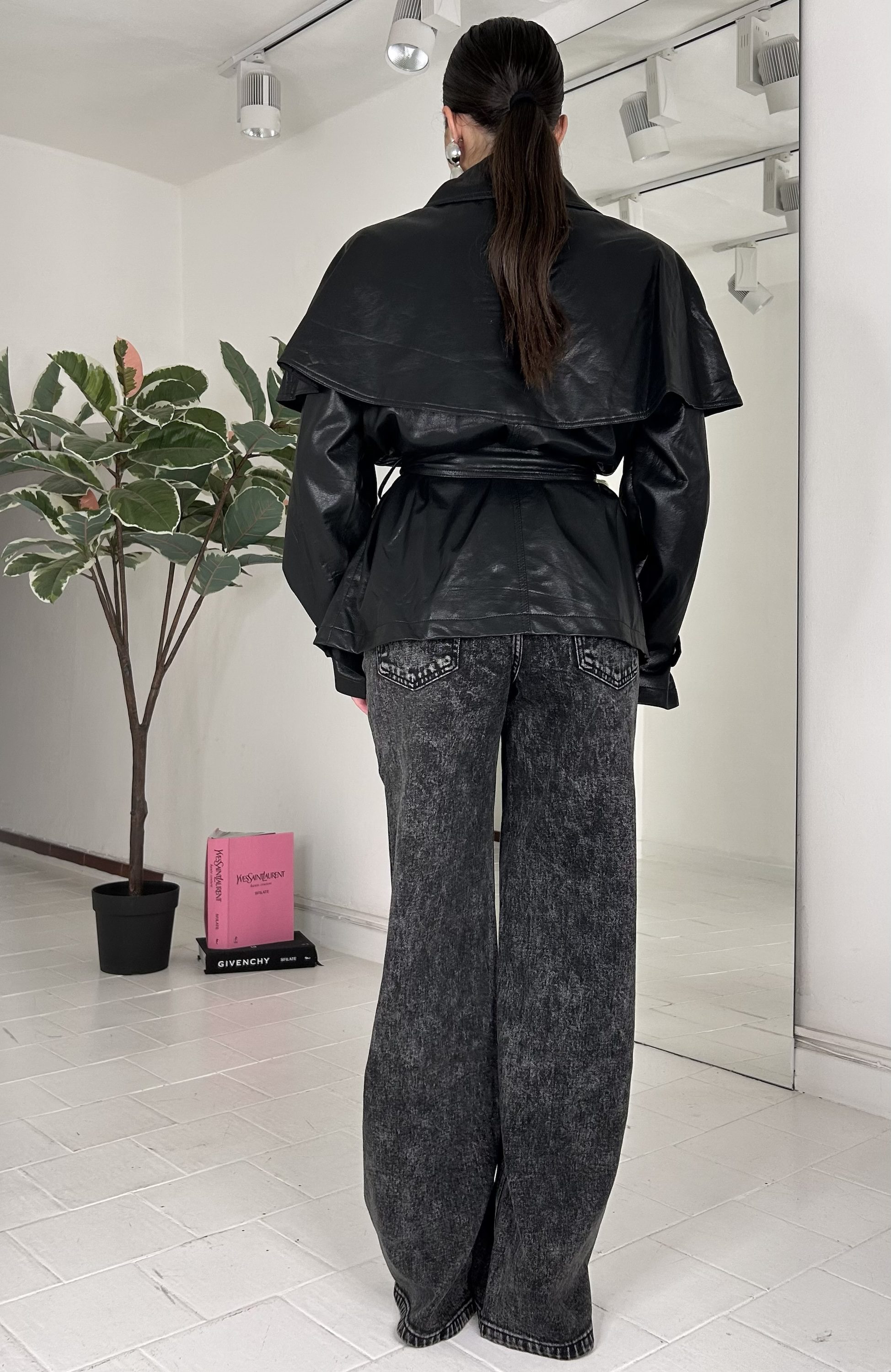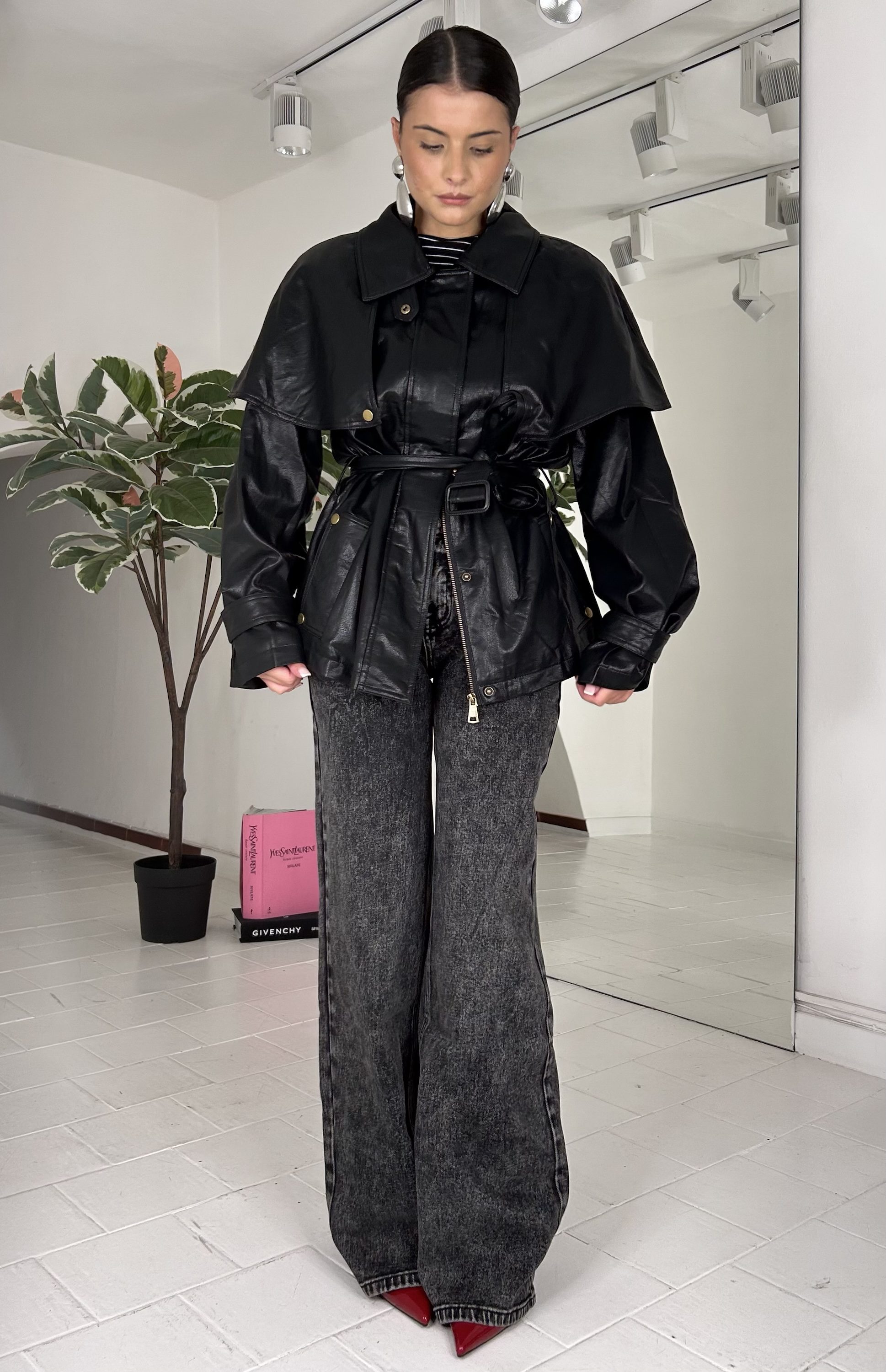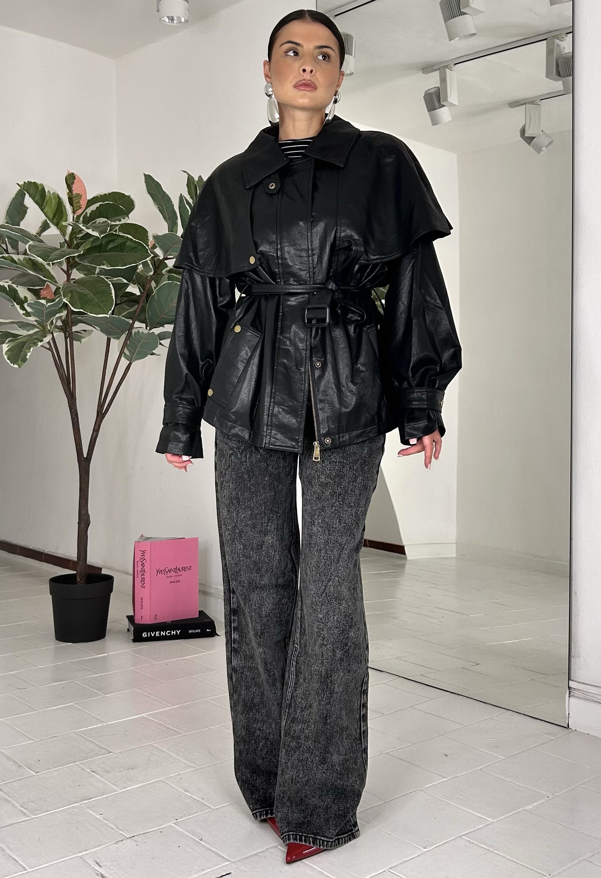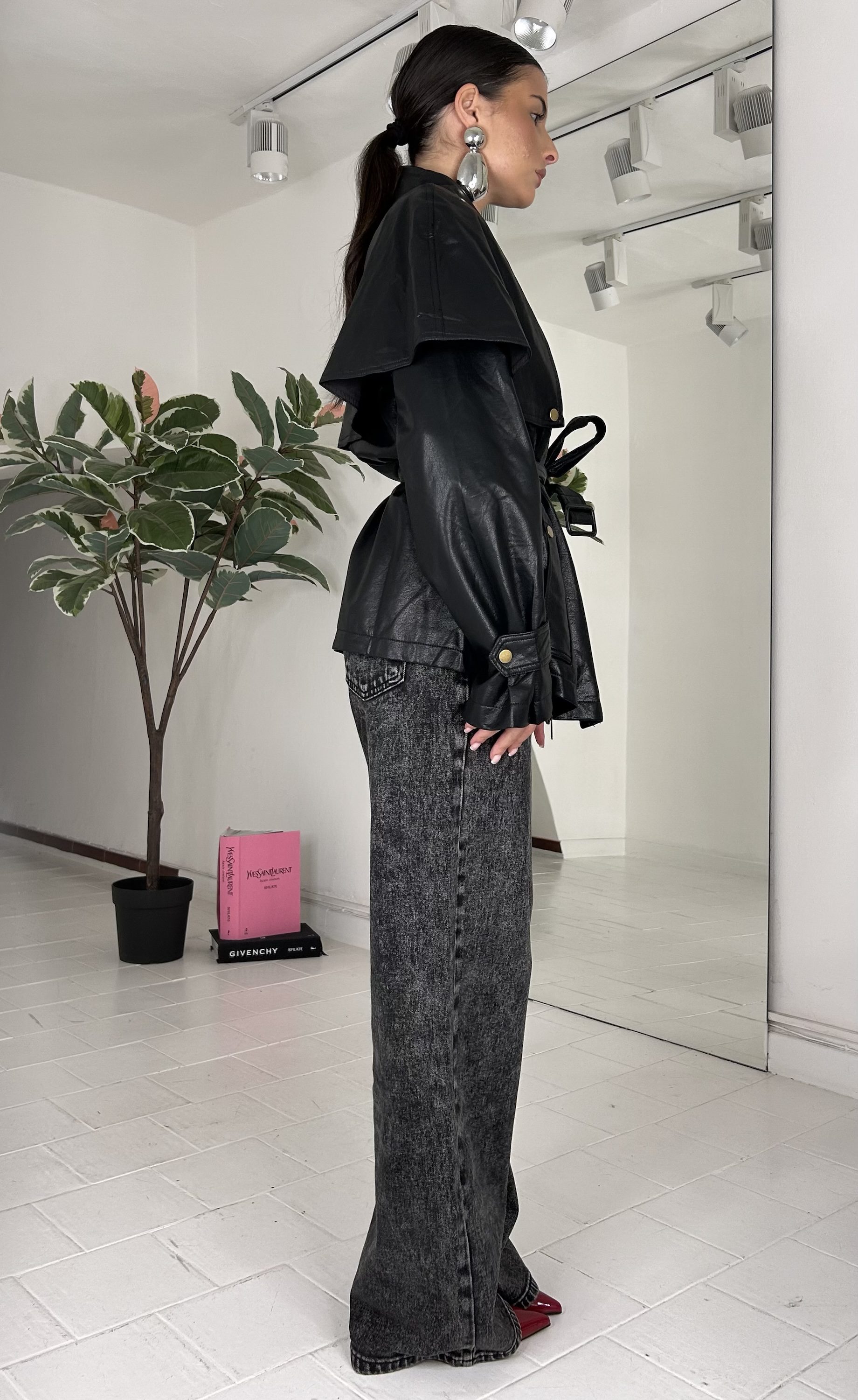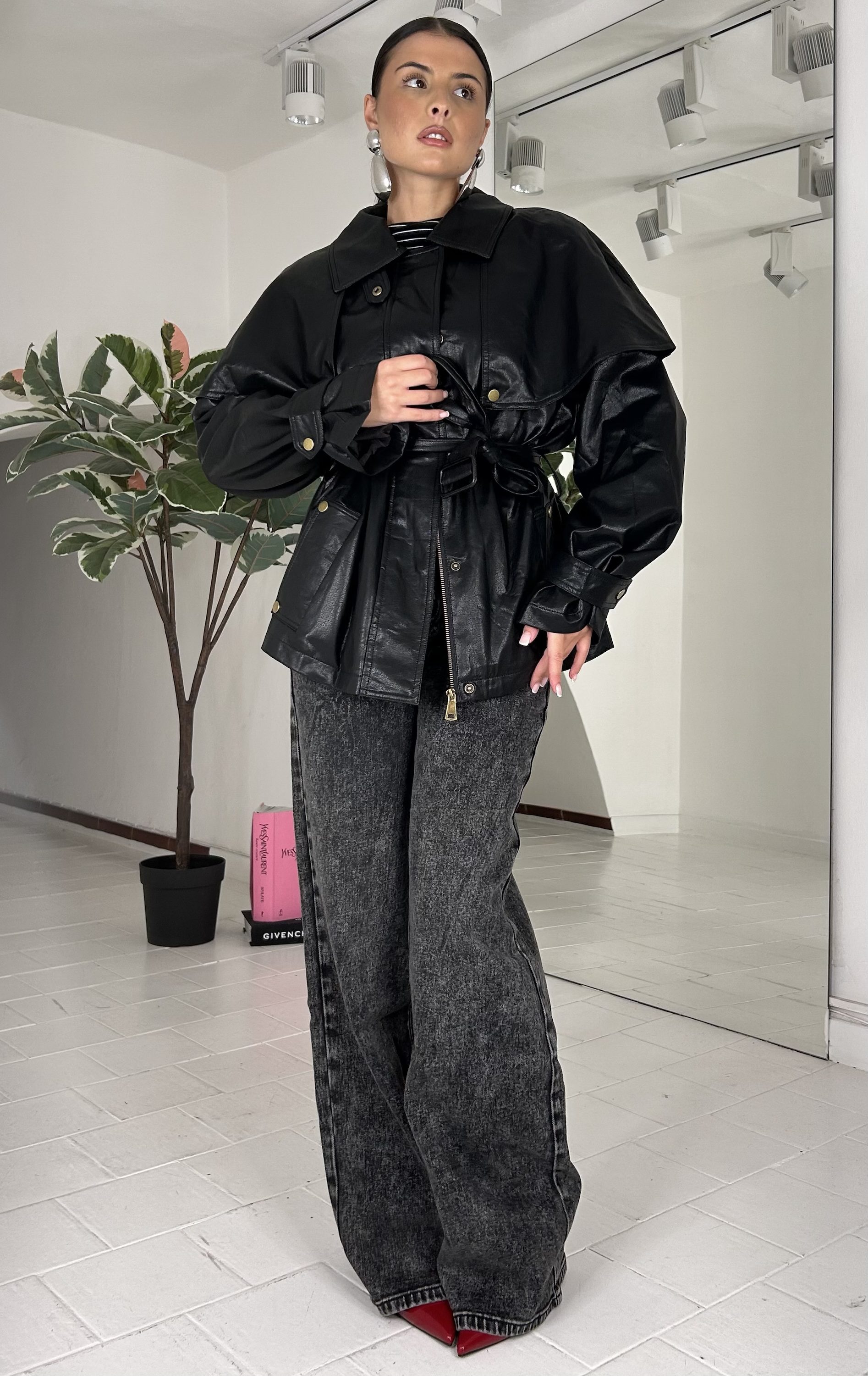 Consiglio da xs ad L, in ecopelle, foderato, con bottoni, zip, tasche e cerniera inclusa. La modella รจ una taglia S