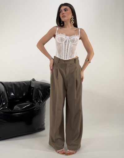 36,00 €Consiglio da xs ad L. Pantalone con bottone, zip, tasche , passanti ed elastici sul retro. Blazer con bottone e spalline rinforzate. La modella è una raglia S ed è alta 1.65cm