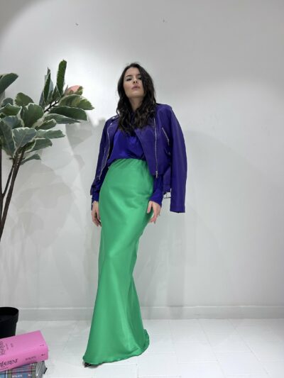 Oversize, molto morbida e lucida. Consiglio da xs a xl